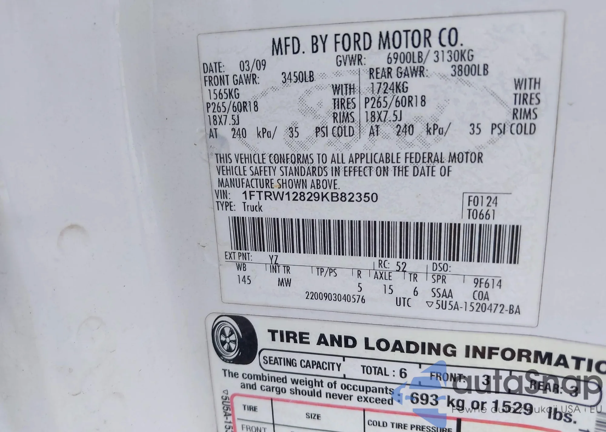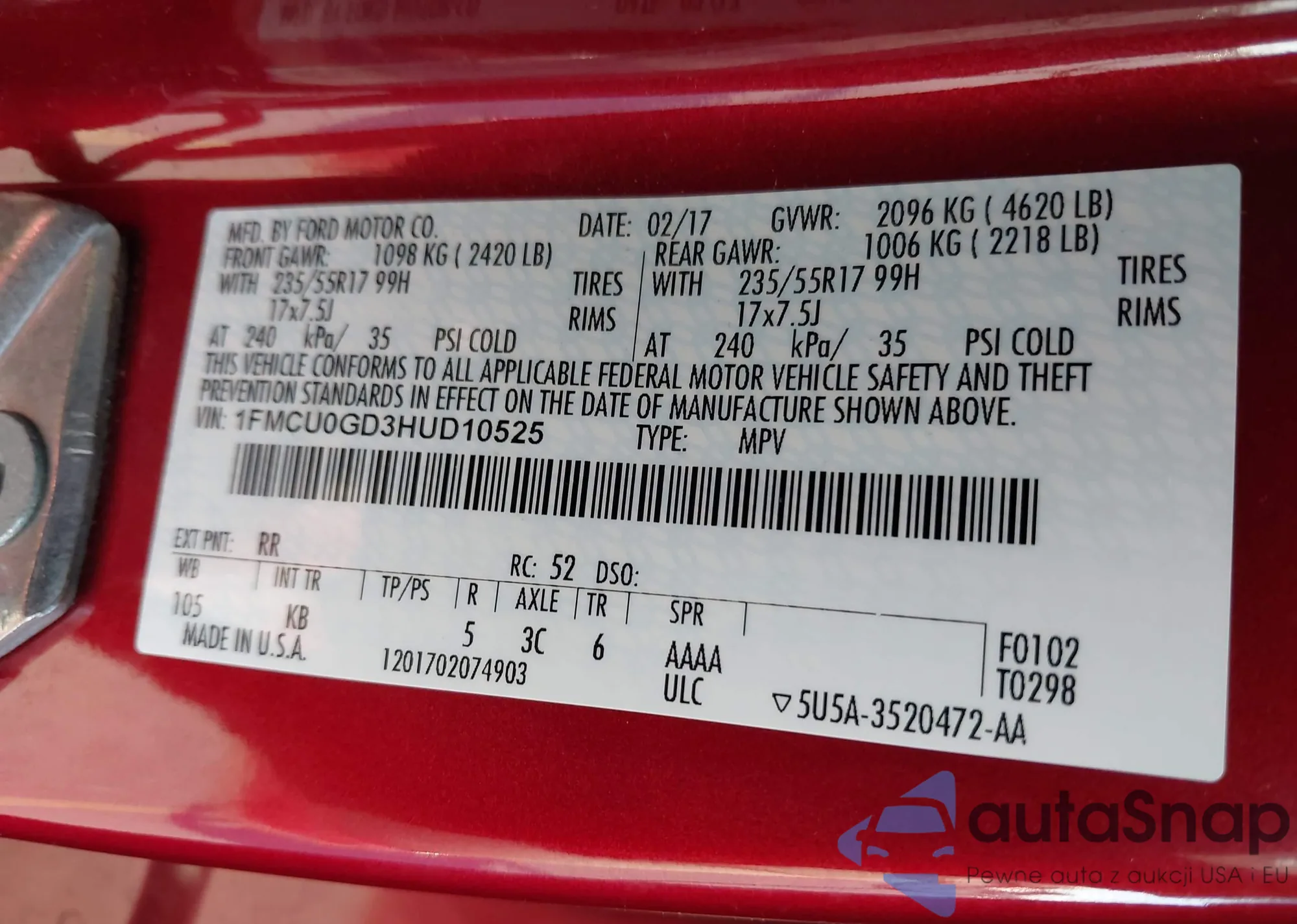 • VIN 1FMCU0GD3HUD10525