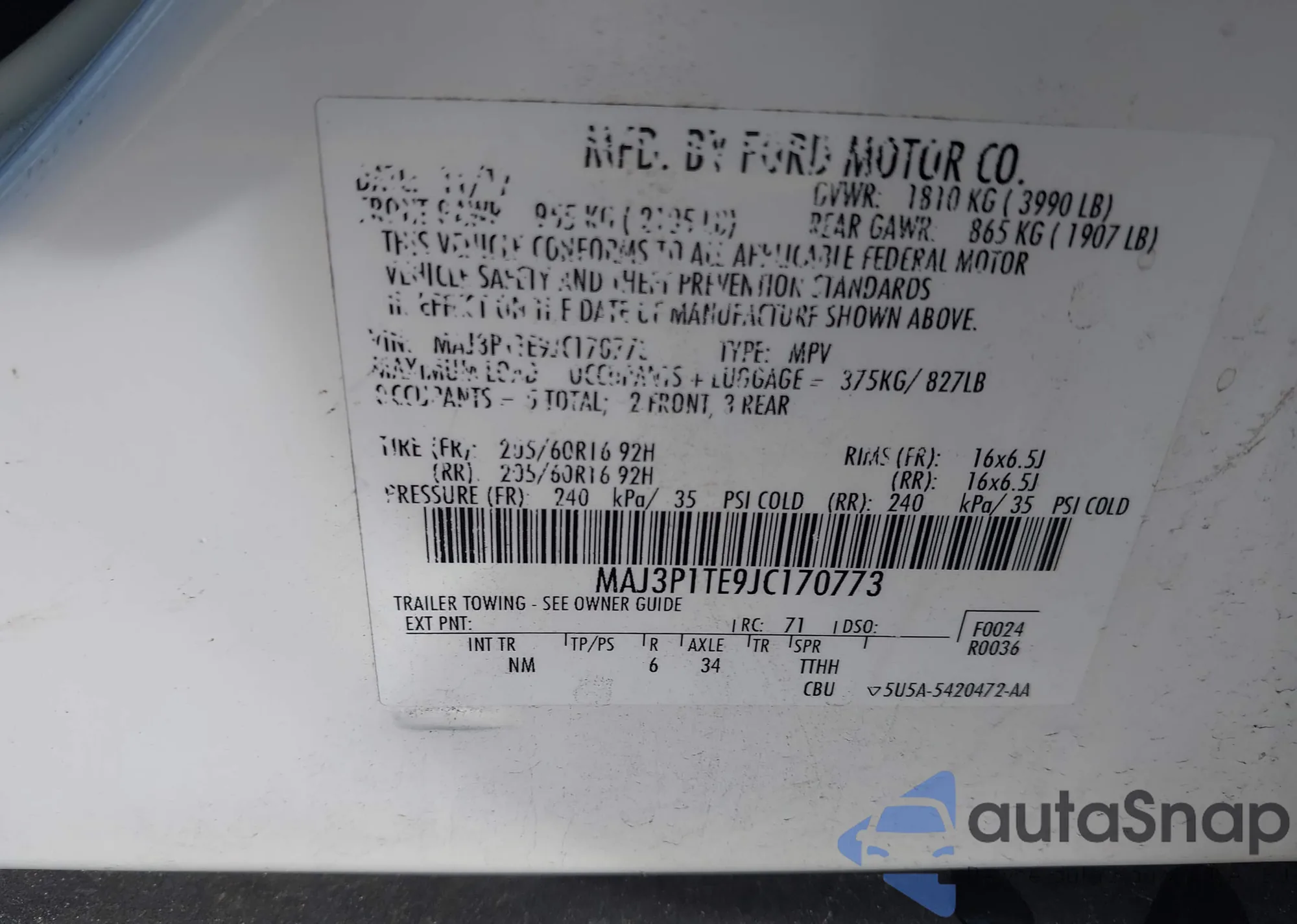 • VIN 1FAHP3N29CL391040