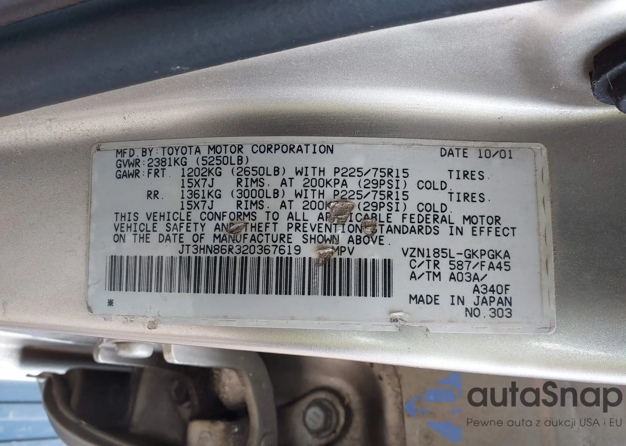 LOT: 43354010 VIN: JT3HN86R320367619