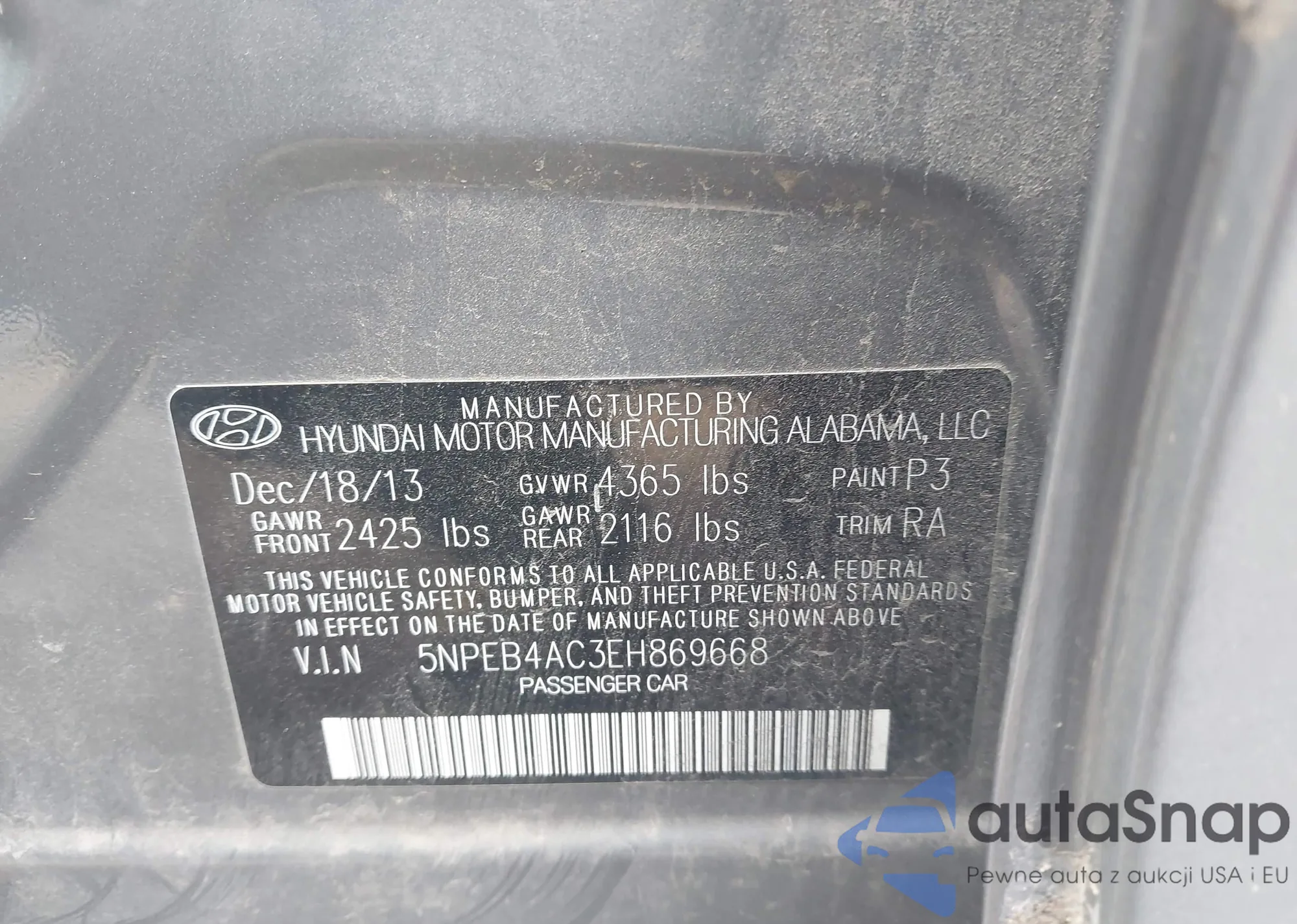 LOT: 43252356 VIN: 2HGFB2F82DH535833