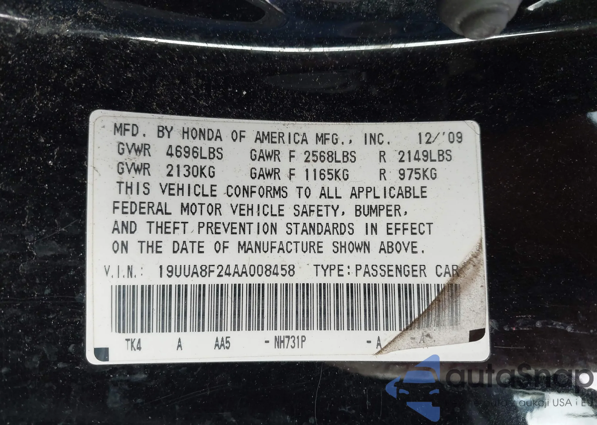 • VIN 19UUA8F24AA008458