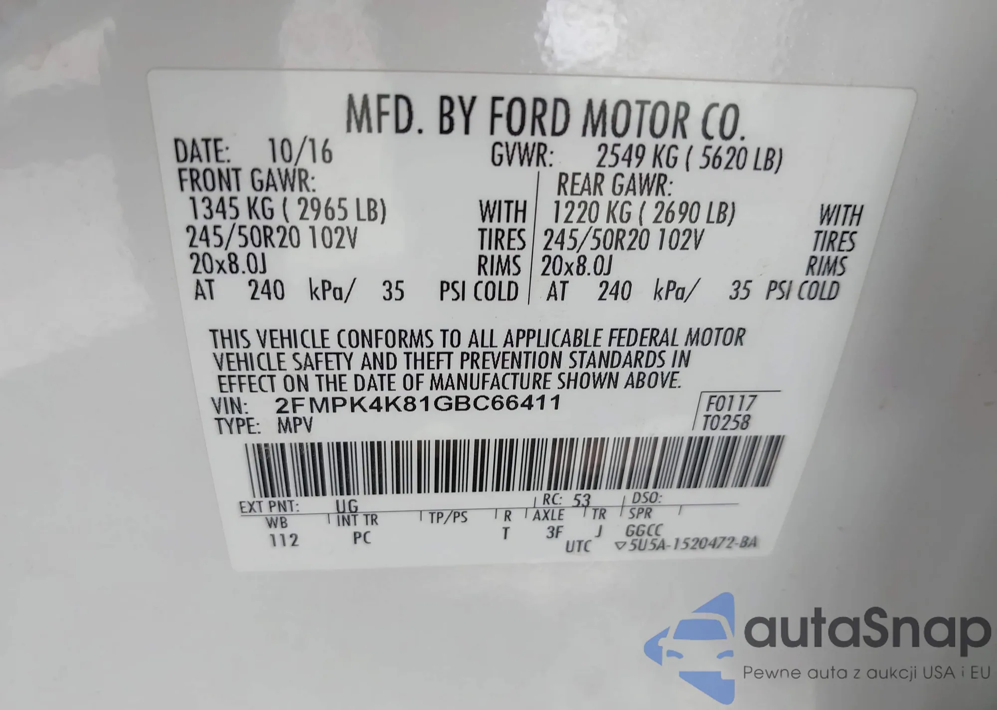 • VIN 2FMPK4K81GBC66411