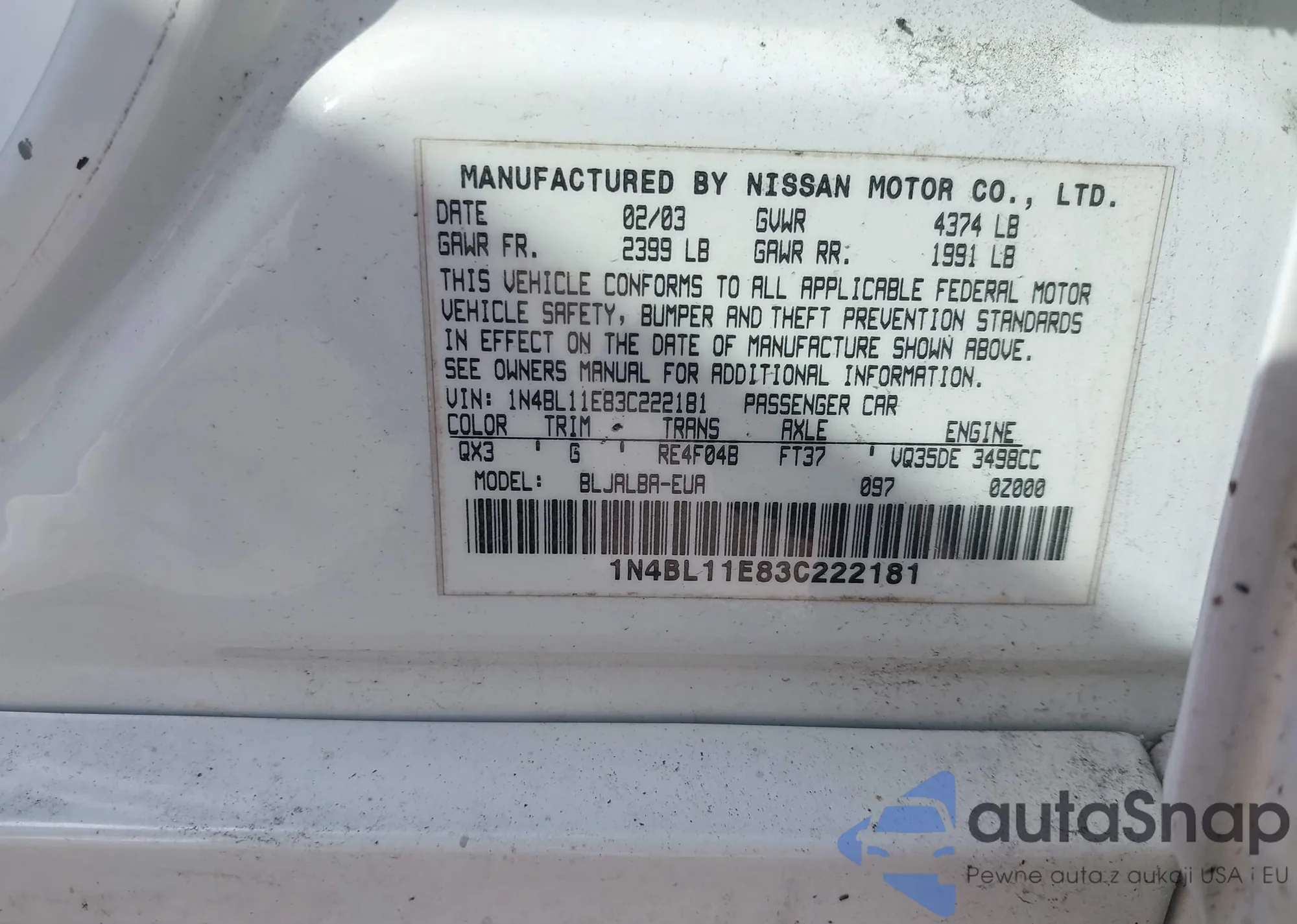 LOT: 43183965 VIN: 1N4AL3AP2FC483724