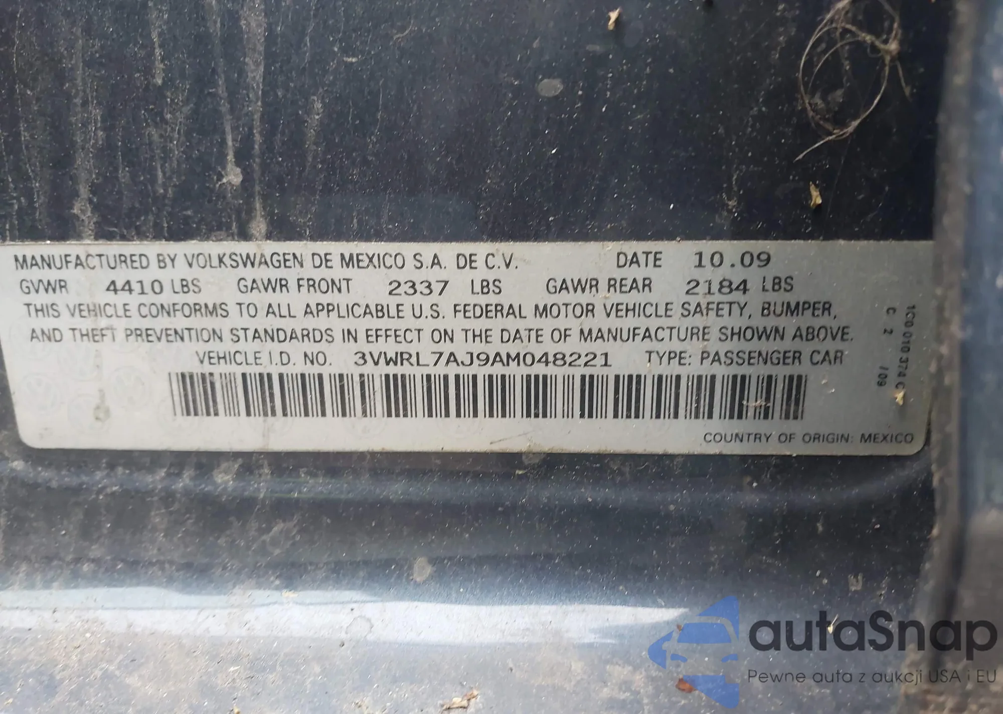 • VIN 3VWRL7AJ9AM048221