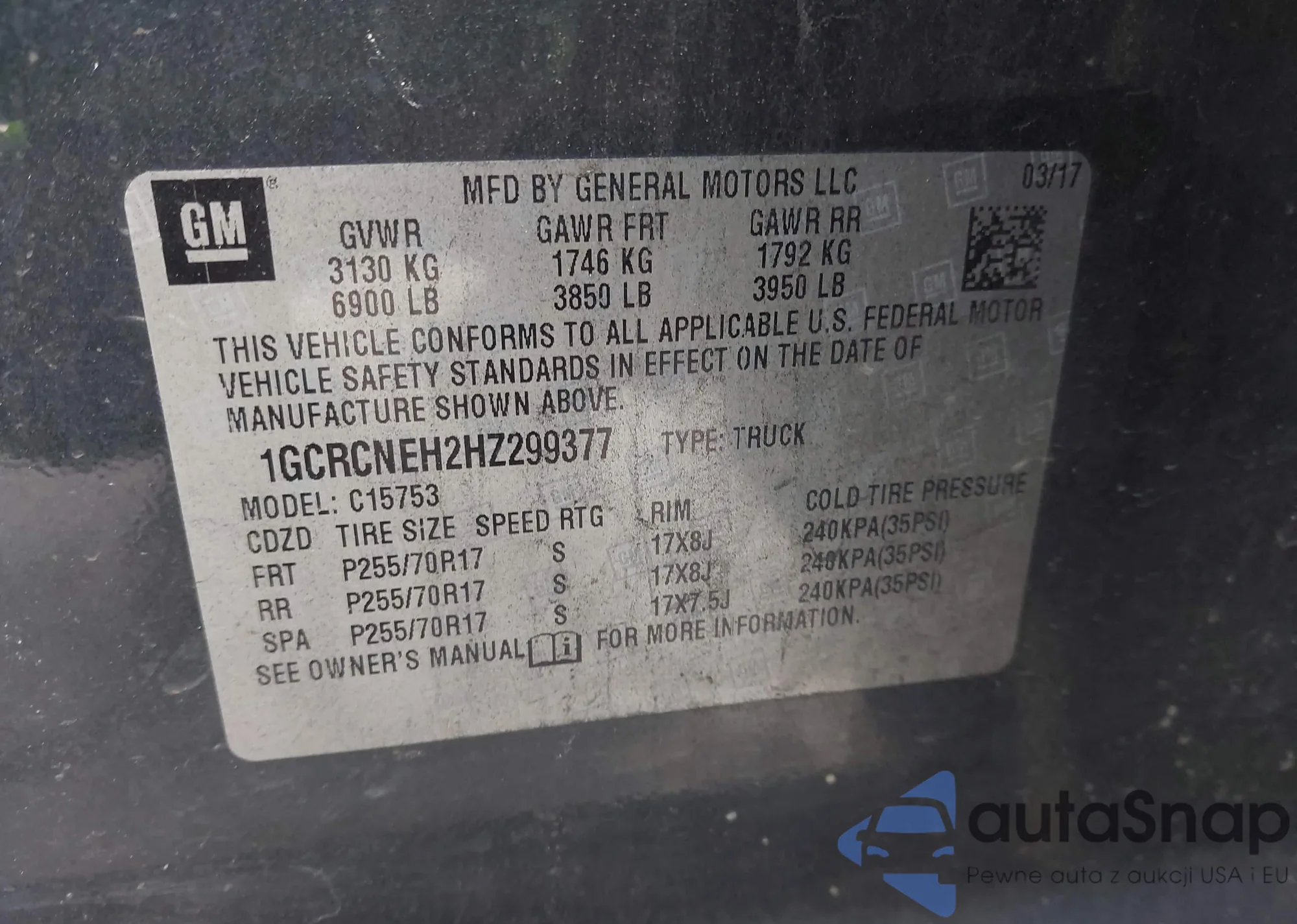 LOT: 43405032 VIN: 1GCRCNEH2HZ299377
