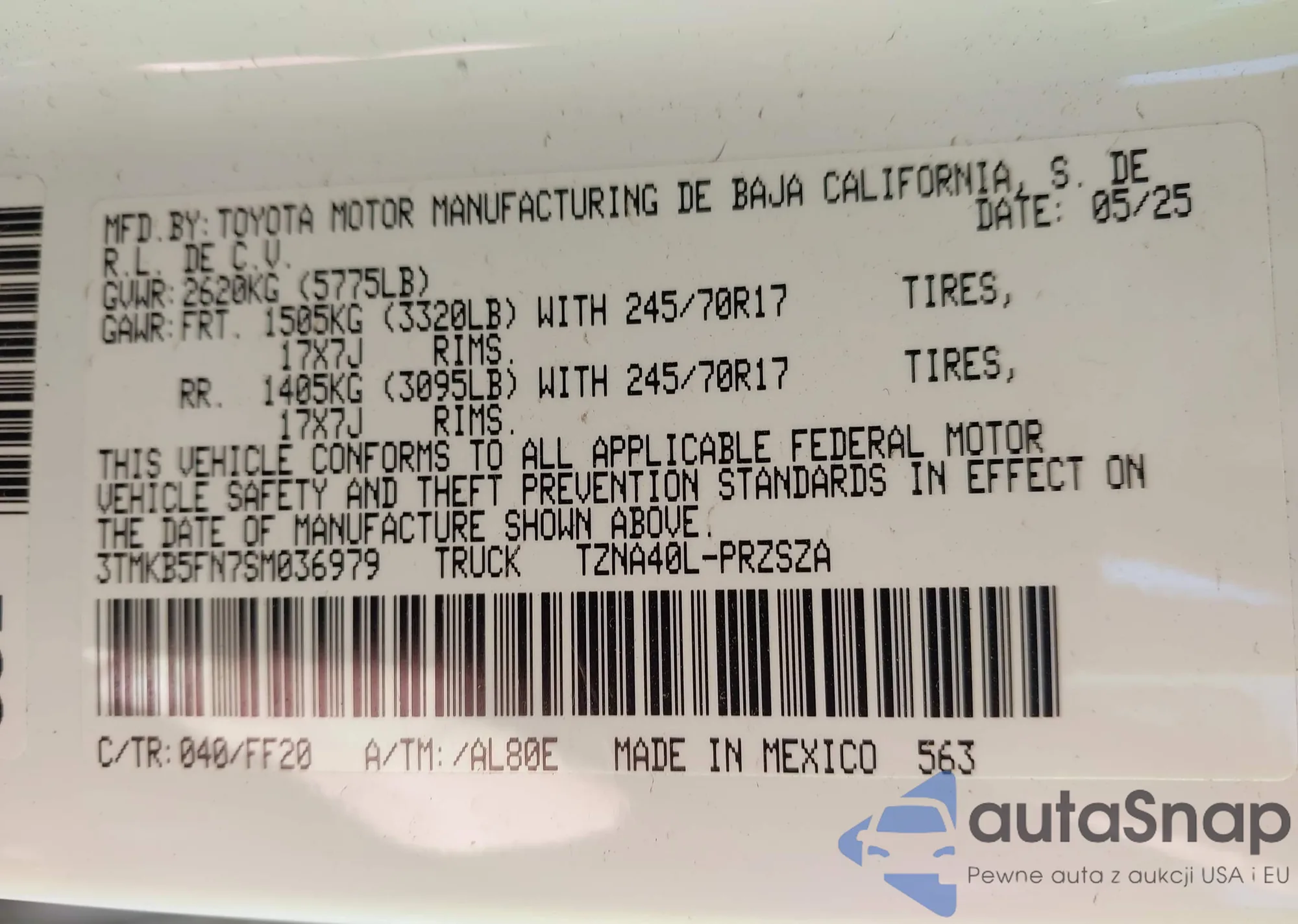 • VIN 3TMKB5FN7SM036979