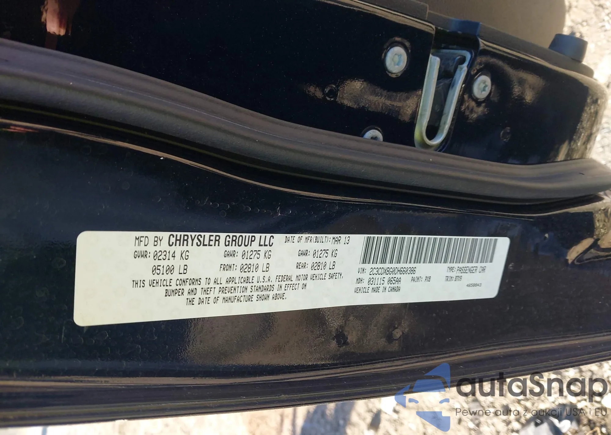 • VIN 2C3CDXBG0DH660386