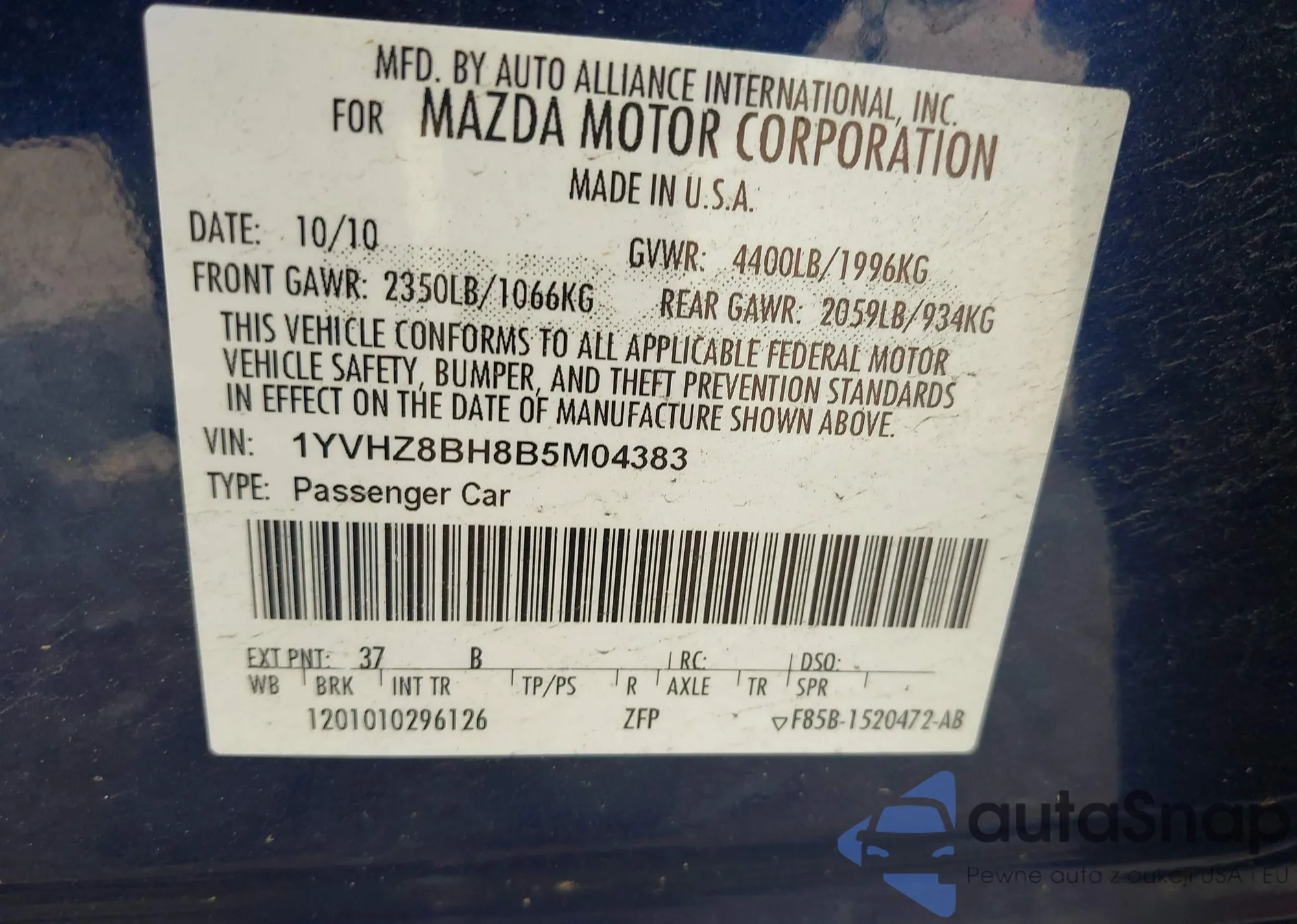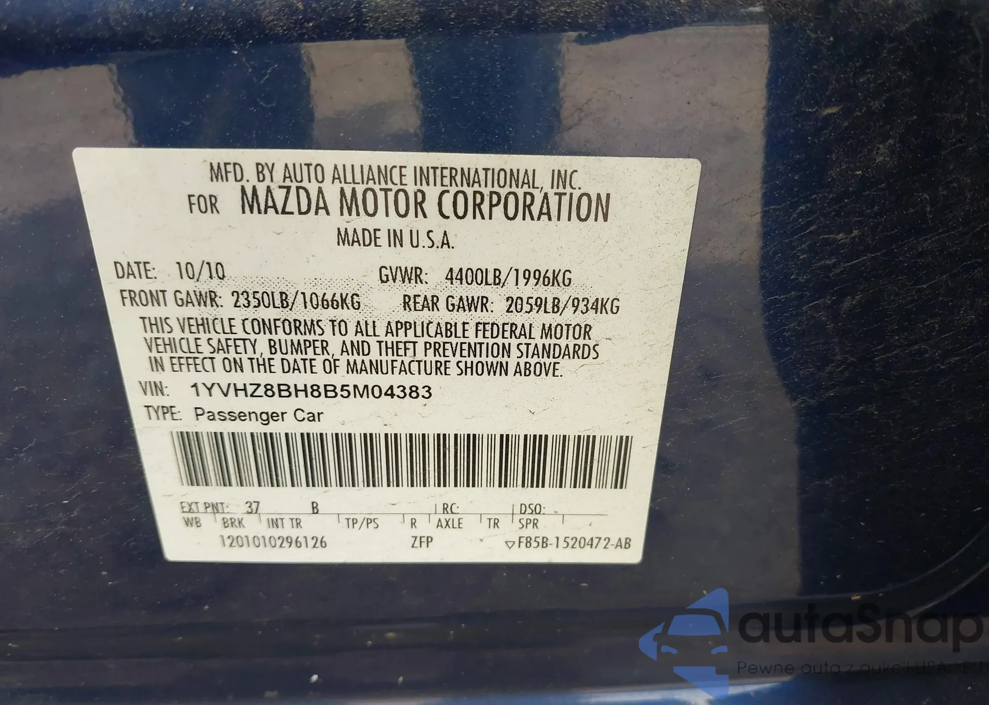 • VIN 1YVHZ8BH8B5M04383
