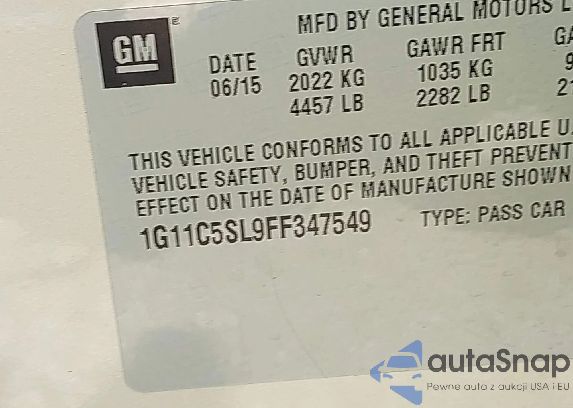 LOT: 43222163 VIN: 1G11C5SL9FF347549