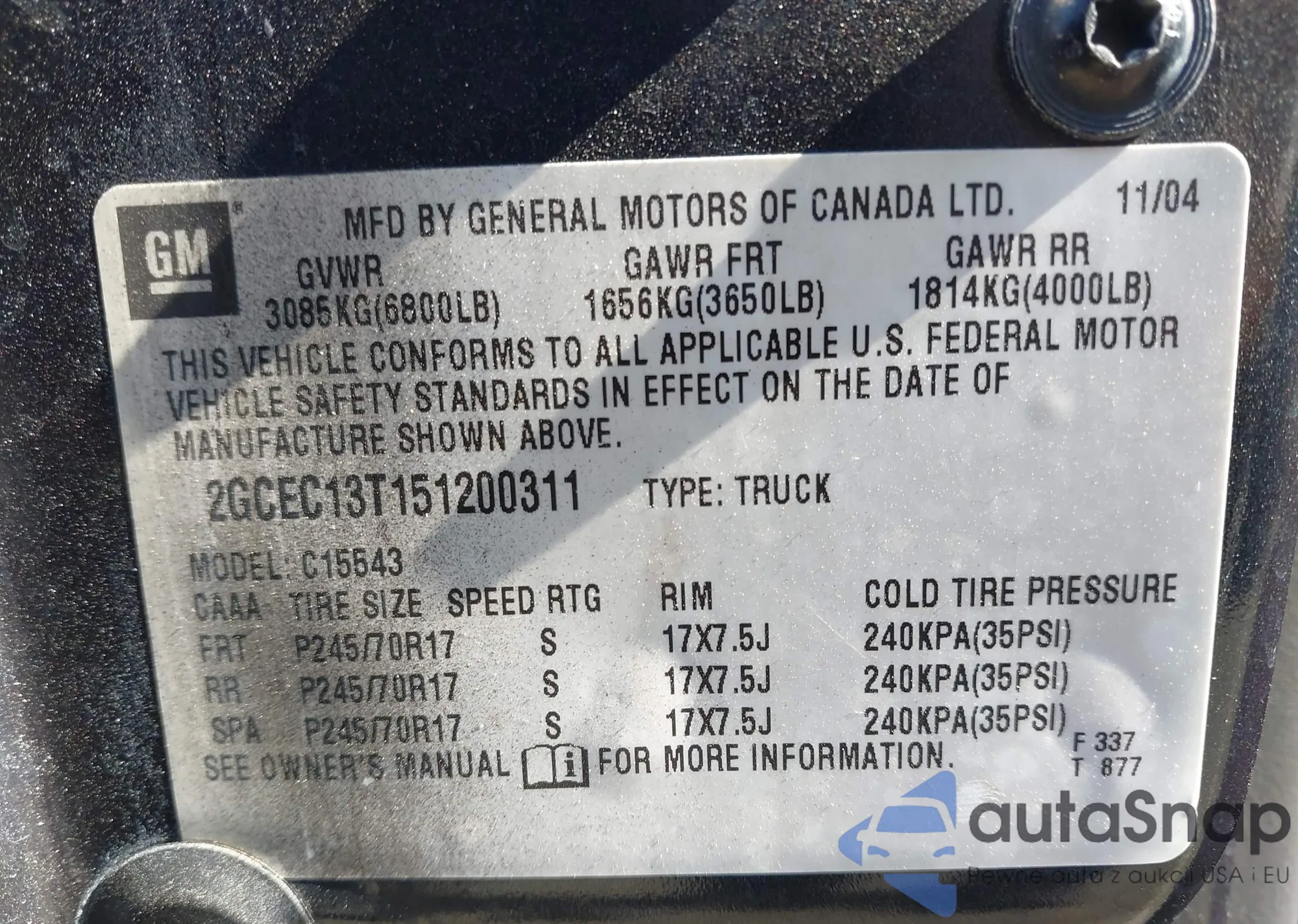 • VIN 2GCEC13T151200311