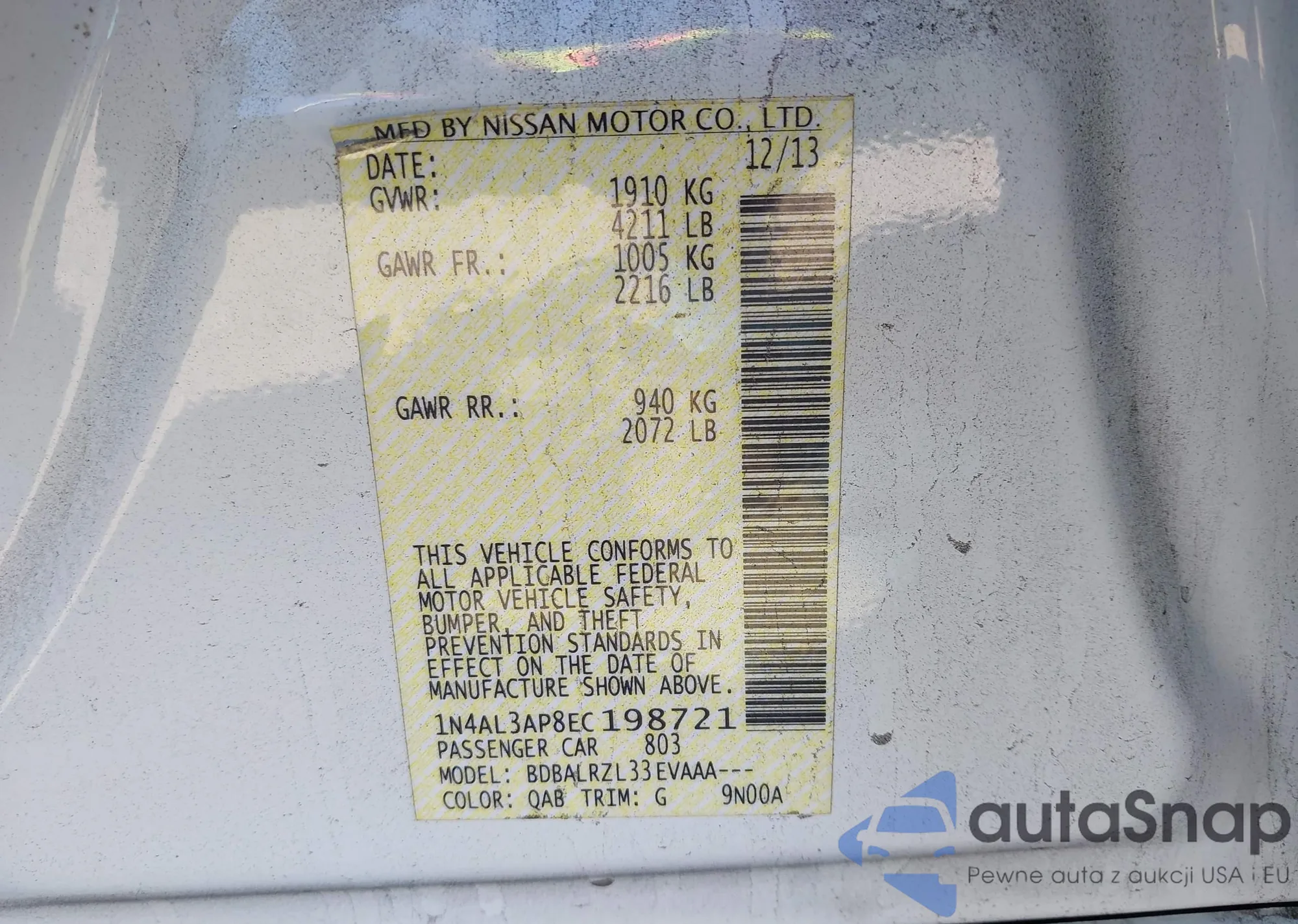 LOT: 43473290 VIN: 5N1BT3BB9SC857088