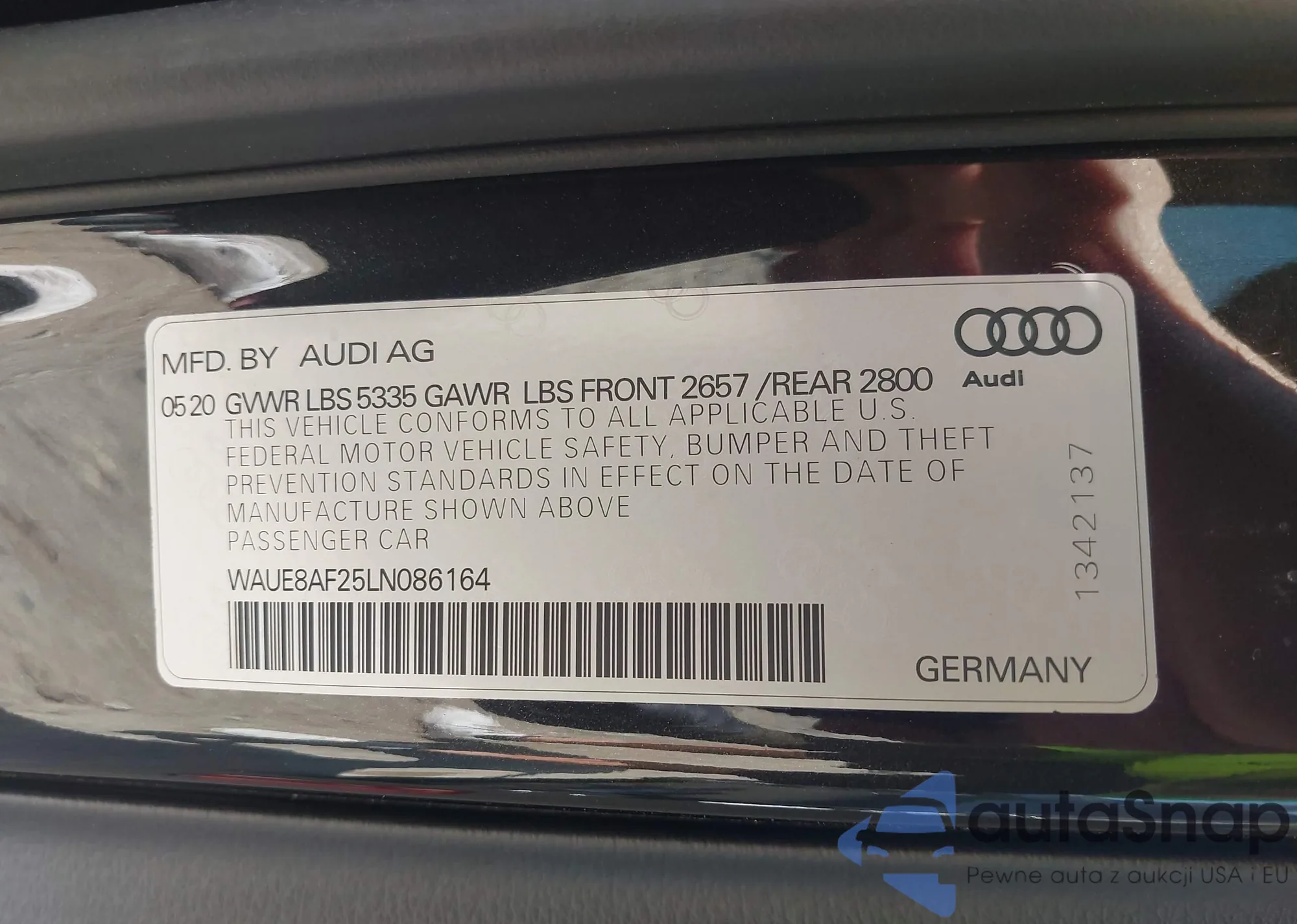 • VIN WAUE8AF25LN086164