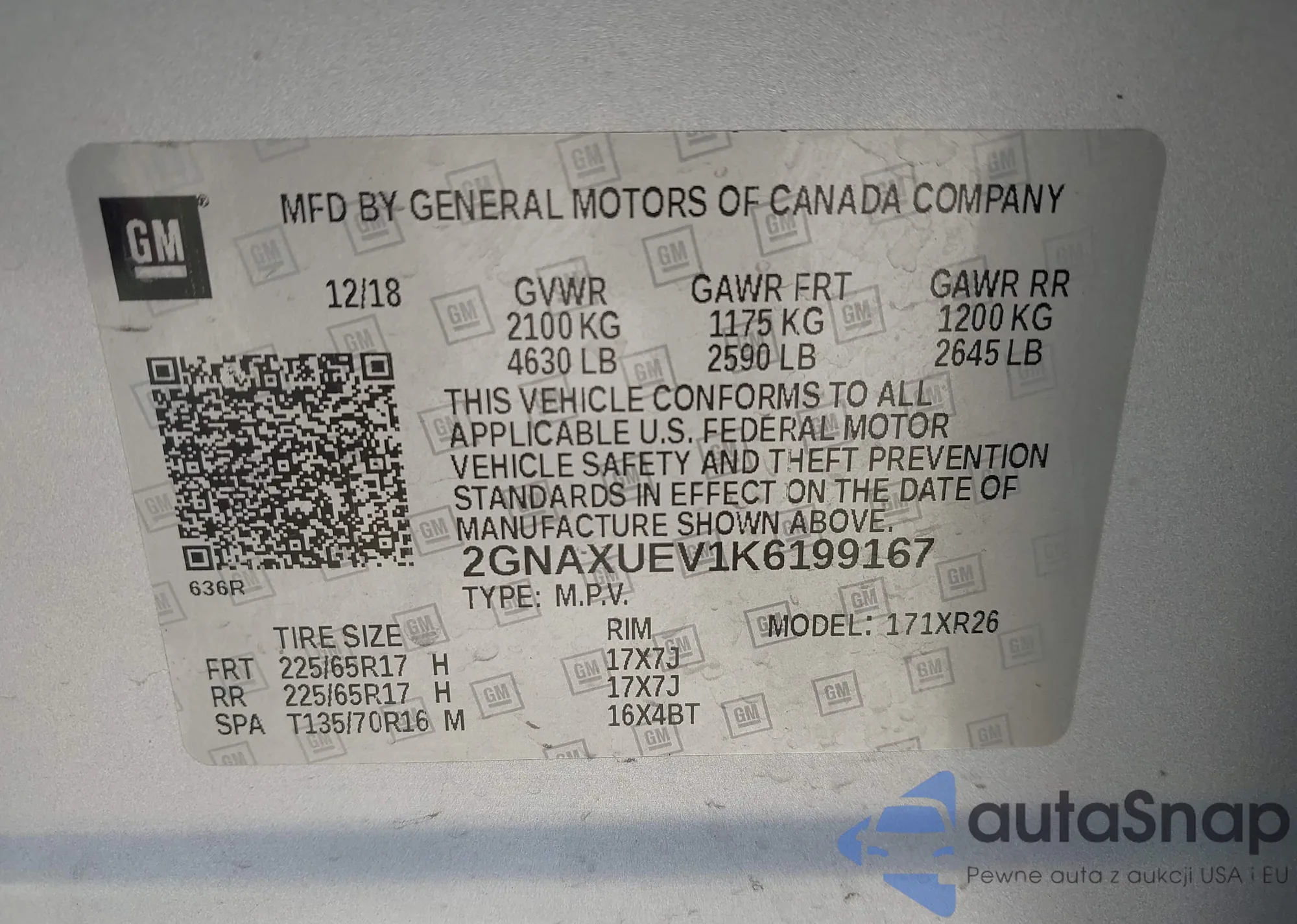 LOT: 43289802 VIN: 2GNAXUEV1K6199167