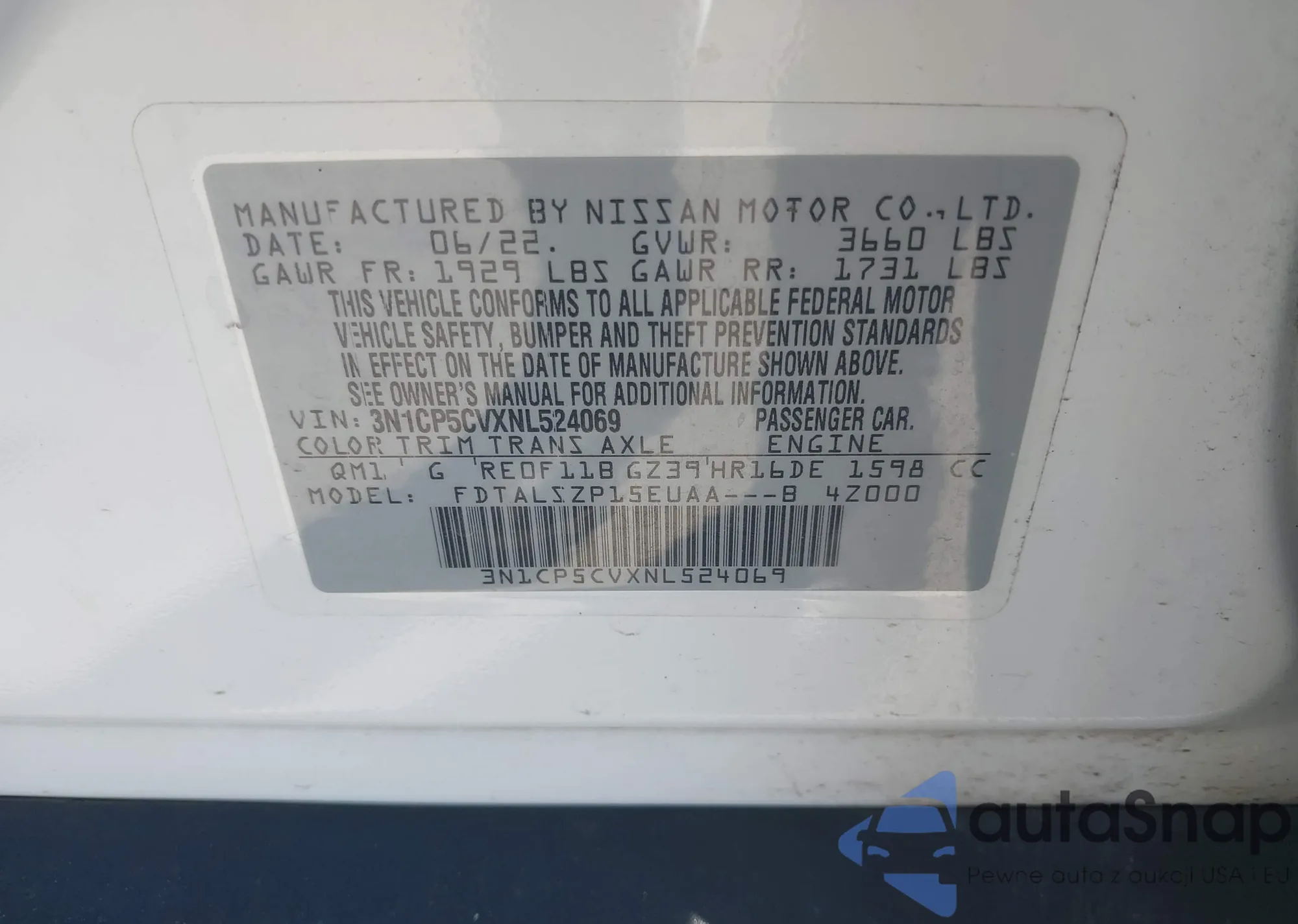 • VIN 3N1CP5CVXNL524069