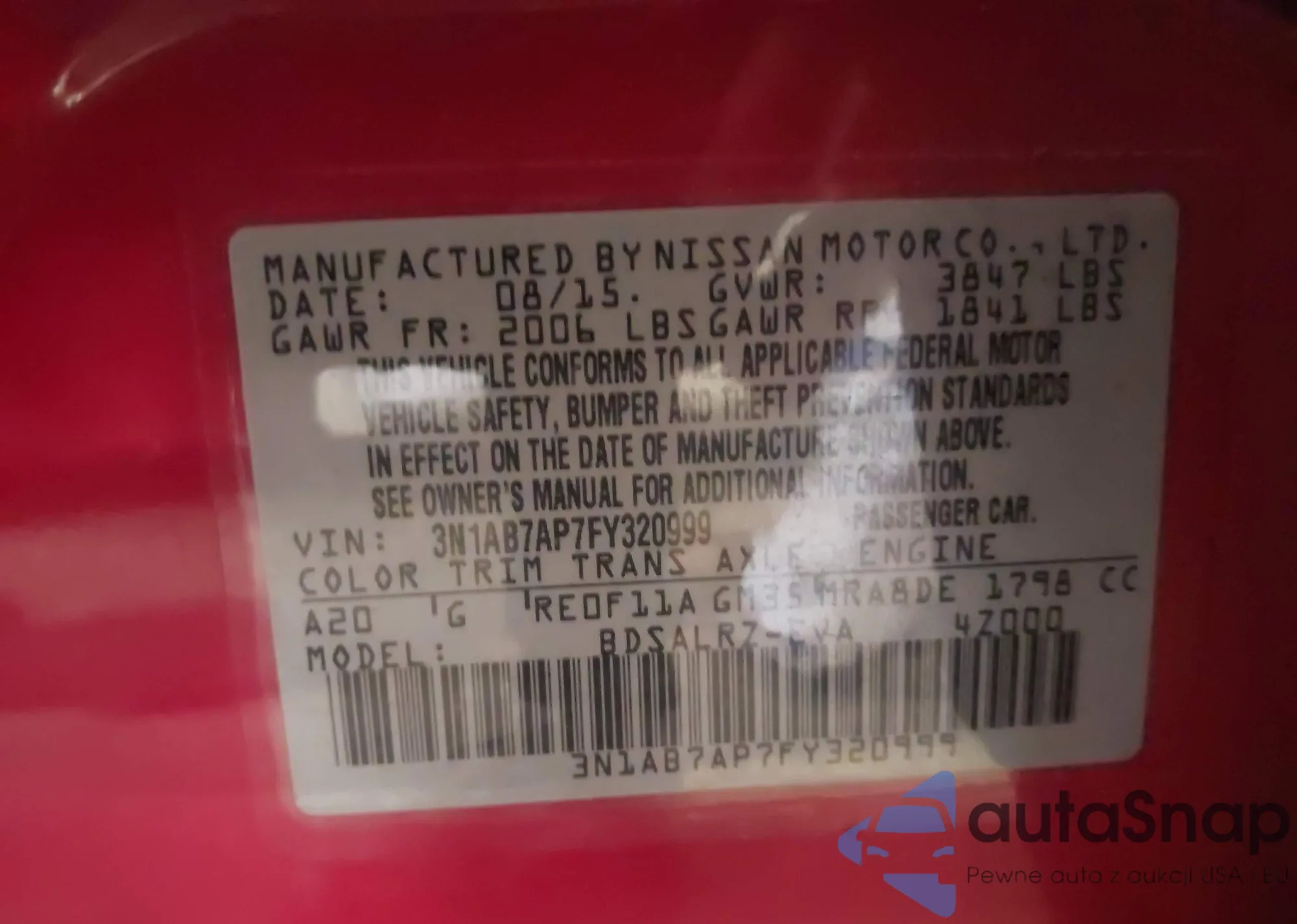 LOT: 43418890 VIN: 3N1AB7AP7FY320999