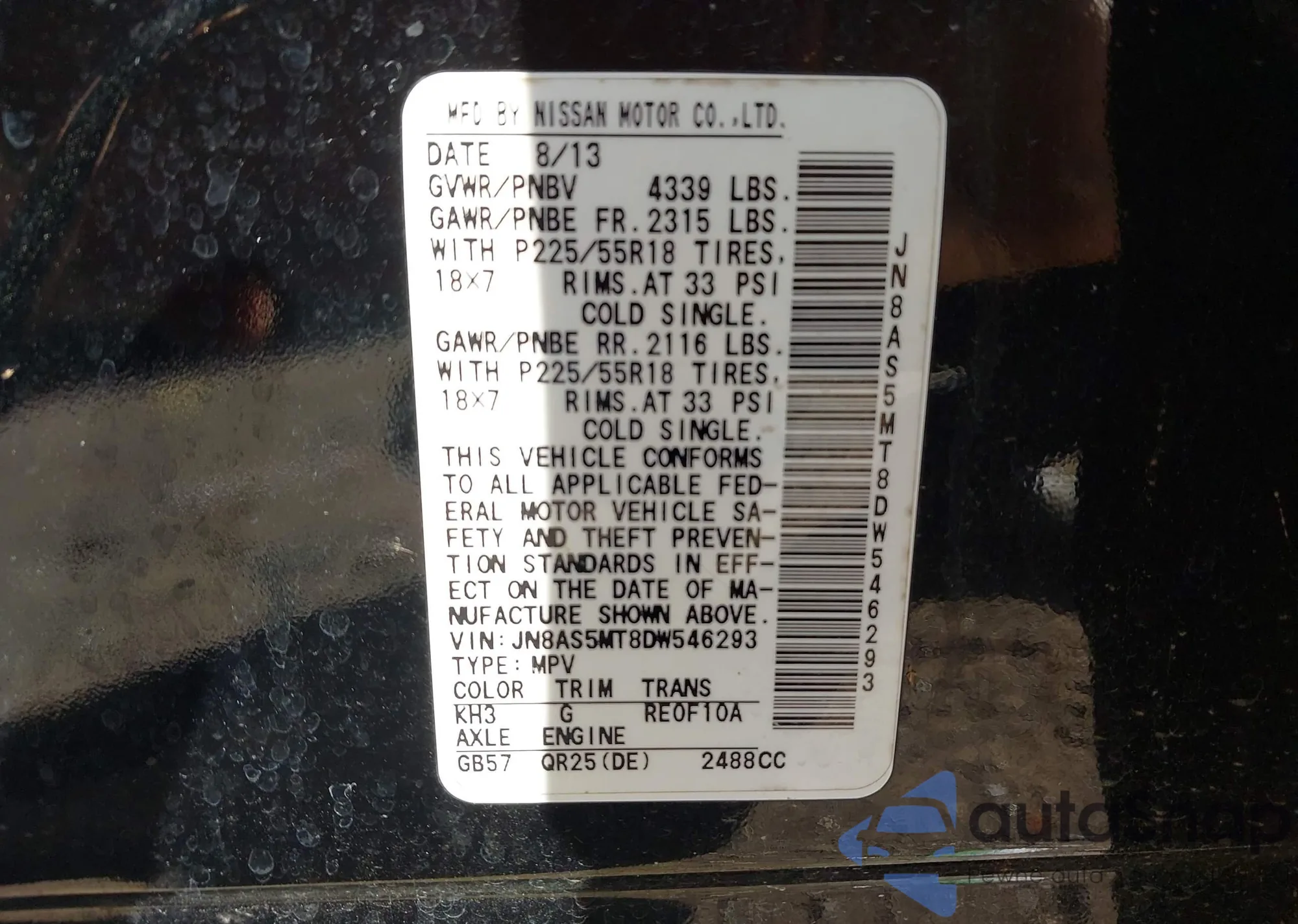 • VIN JN8AS5MT8DW546293
