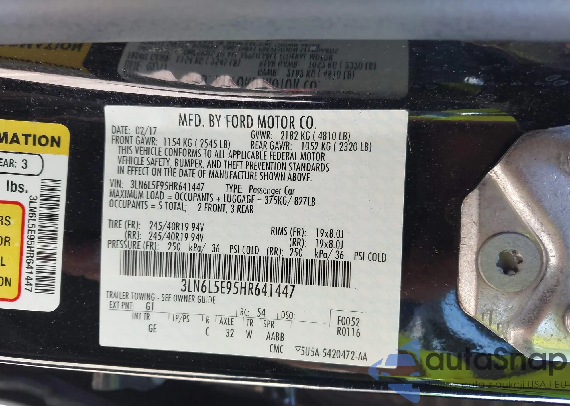 • VIN 1FAHP3GN9BW121987