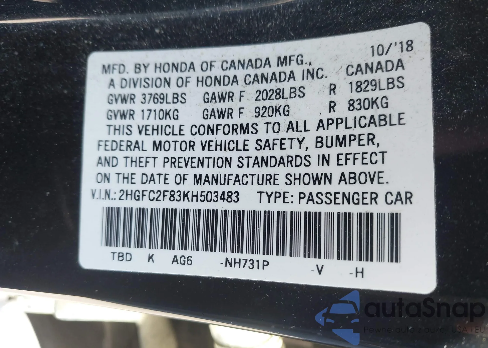 • VIN 5J6RW1H54JL000332