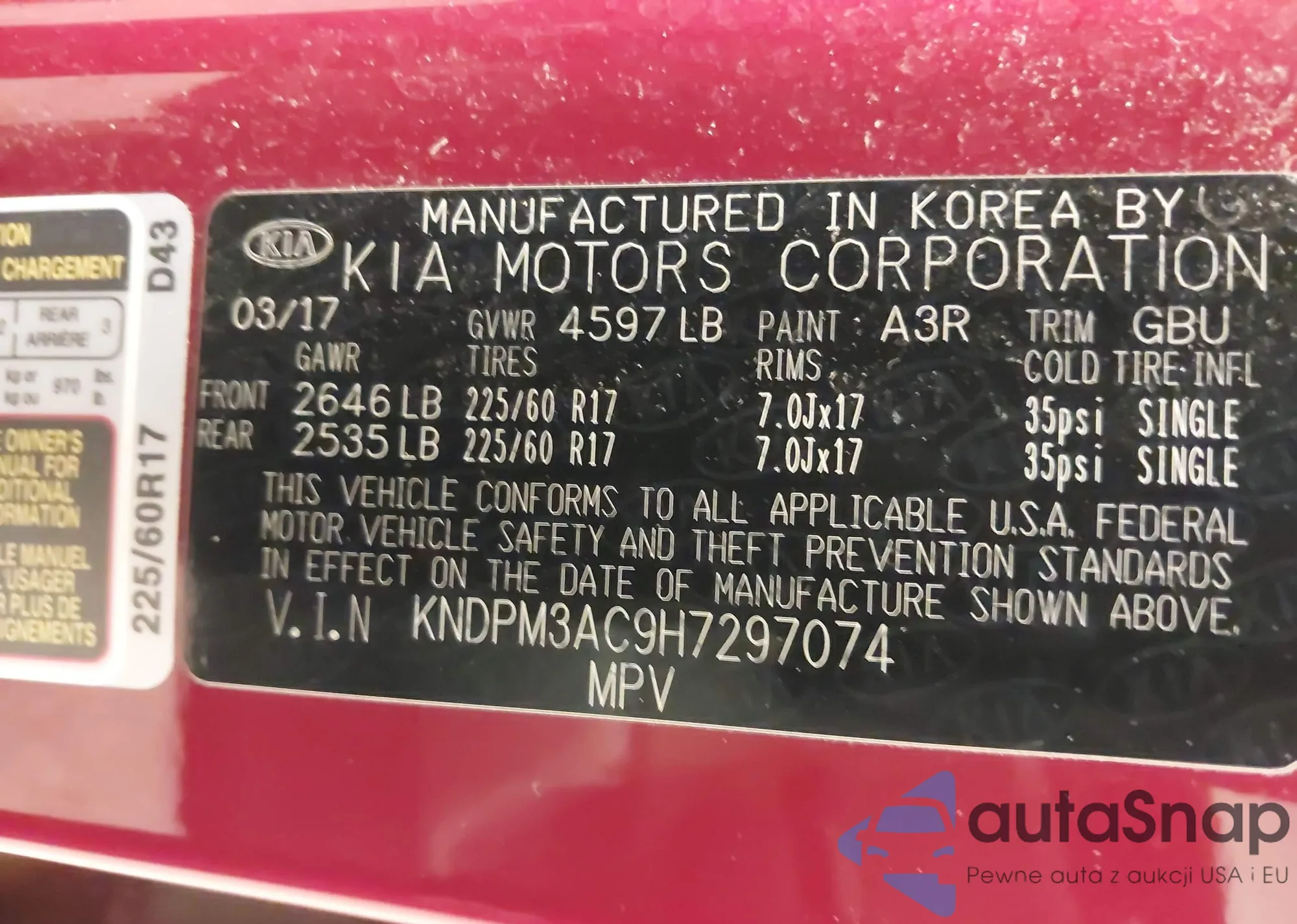 LOT: 43692774 VIN: KNAFB121225190970