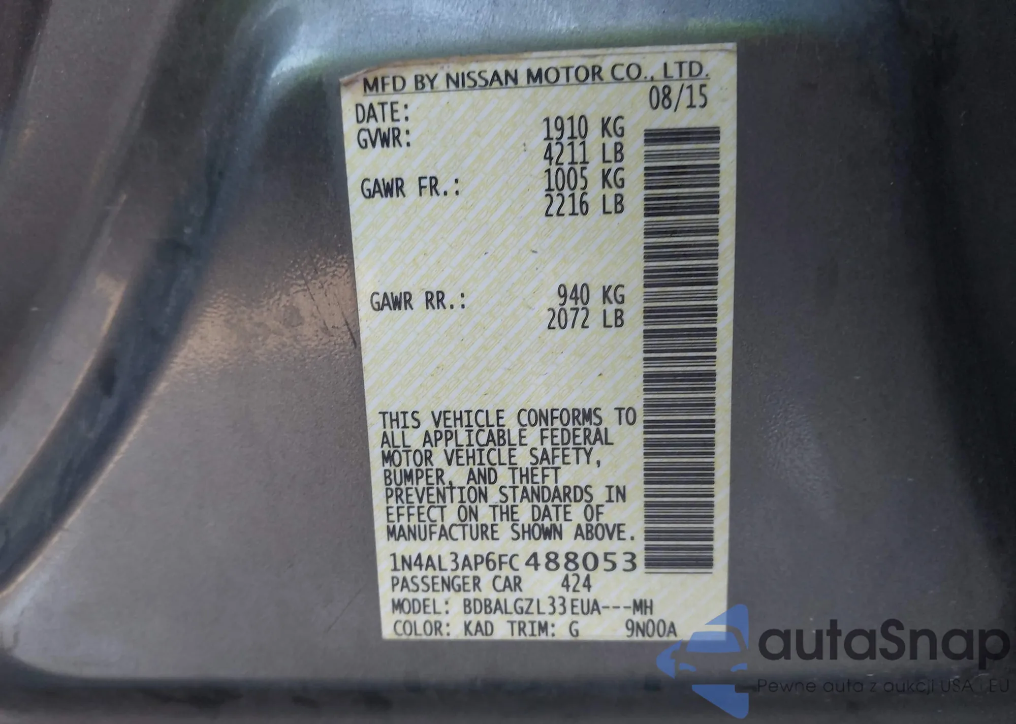 • VIN 1N4AL3AP6FC488053