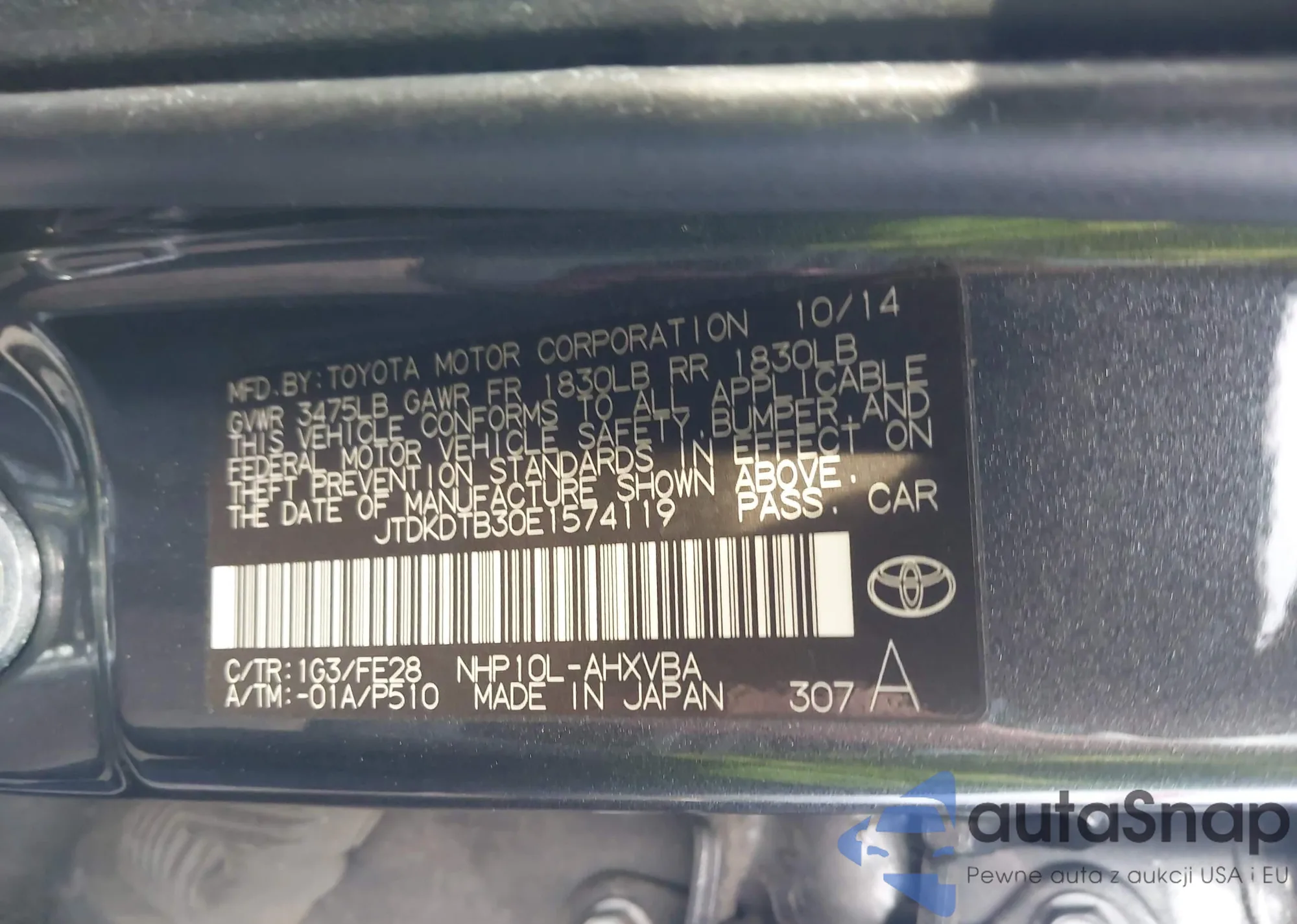 • VIN JTDKDTB30E1574119