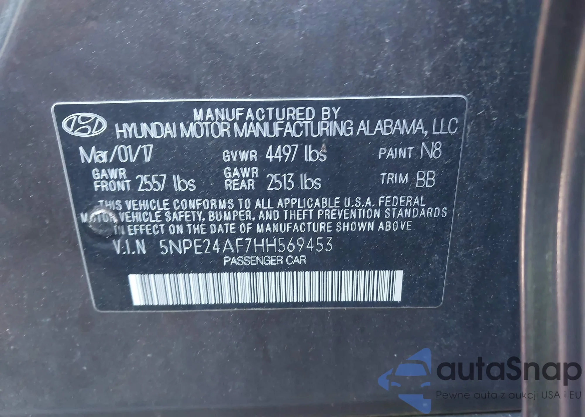 • VIN 5NPEU46F39H477518