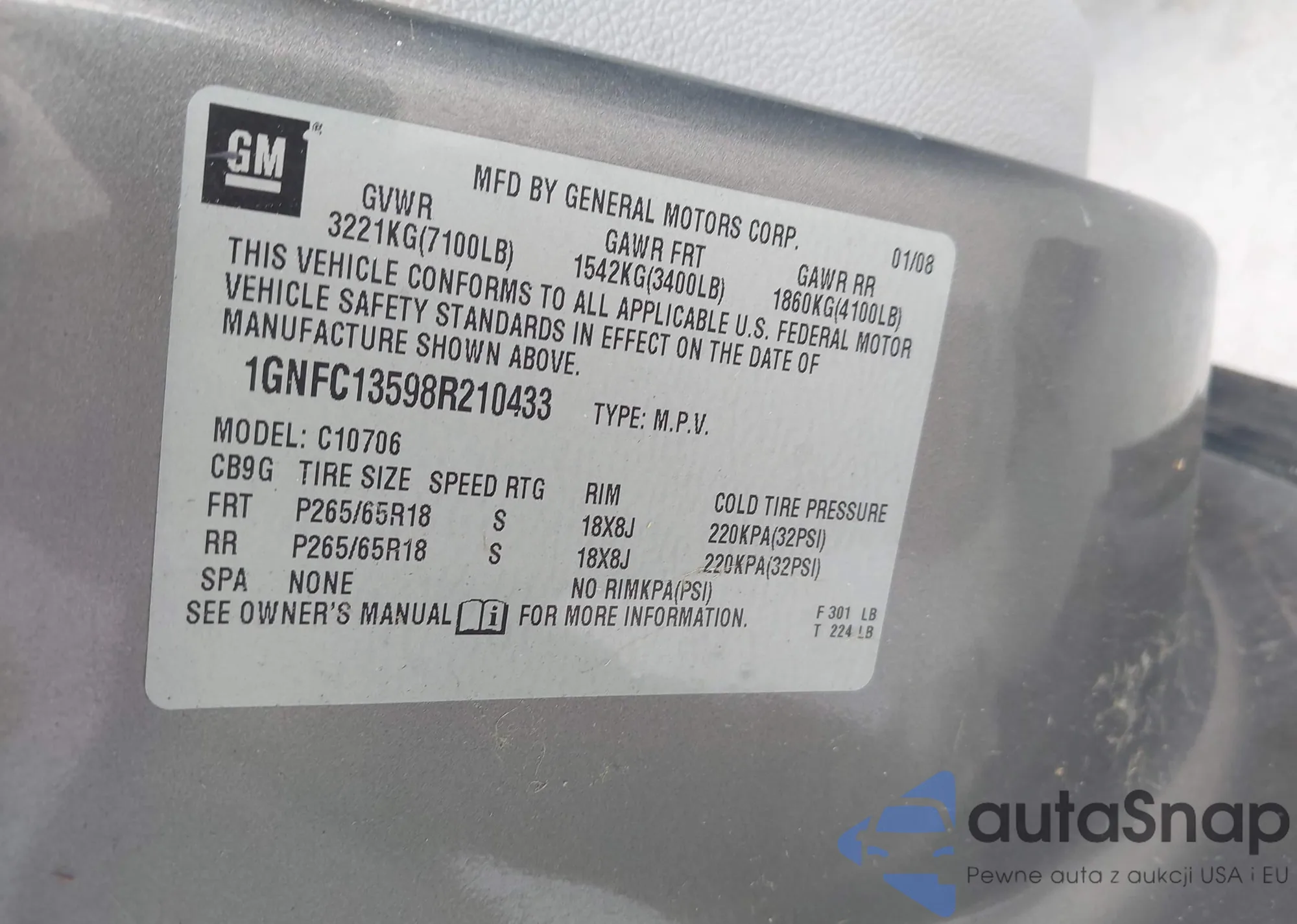 • VIN 1GNFC13598R210433