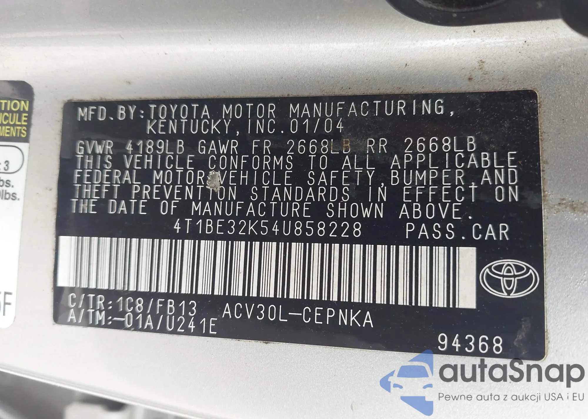 • VIN 4T1BF3EK1BU602660