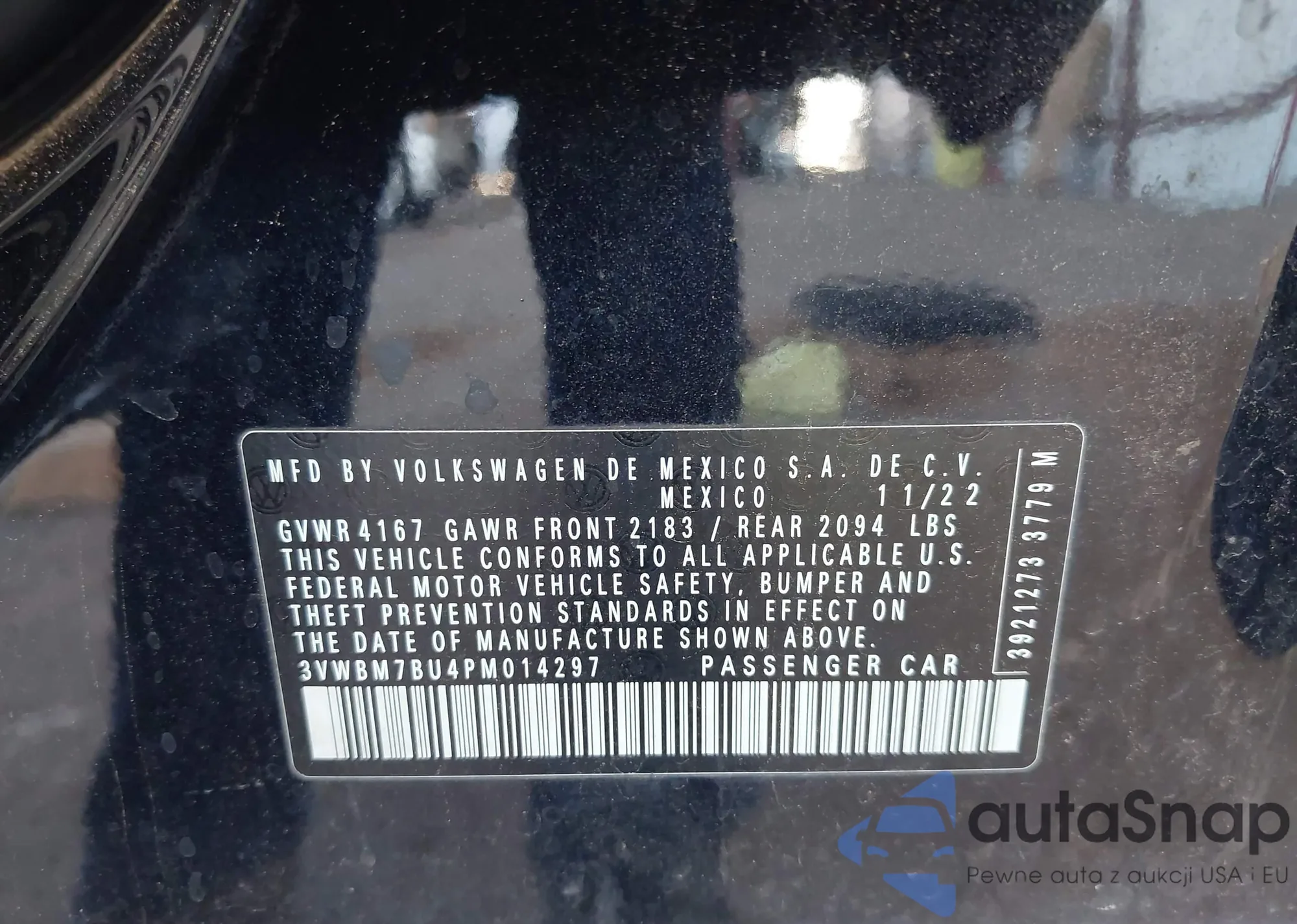 • VIN 3VWBM7BU4PM014297