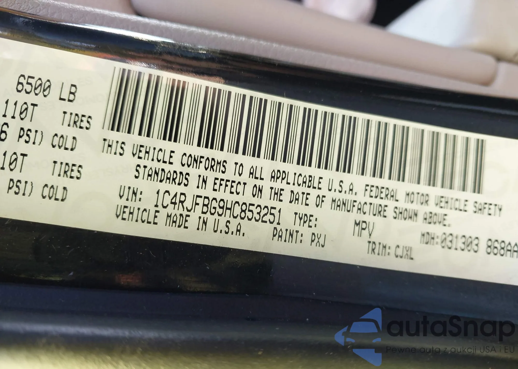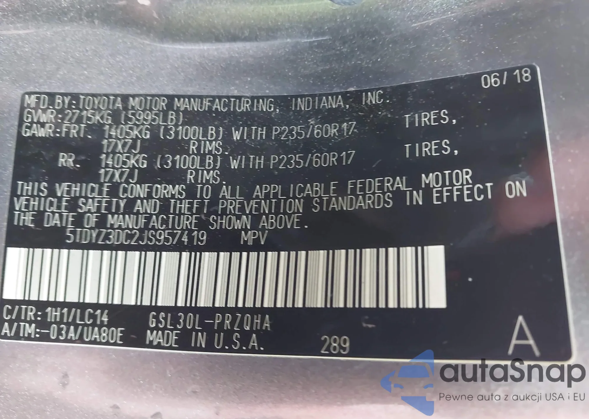 • VIN 5TDYZ3DC2JS957419