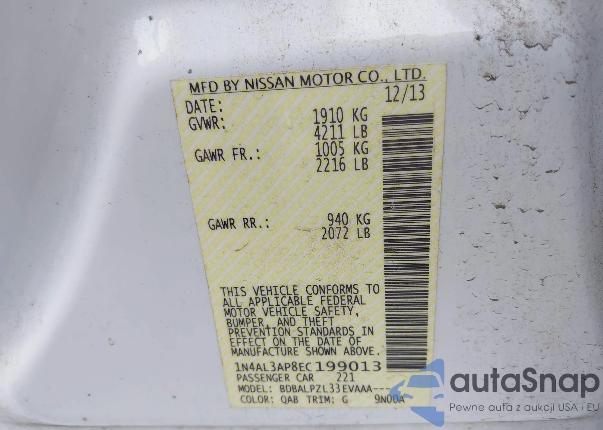 LOT: 43336203 VIN: 1N4AL3AP8EC199013