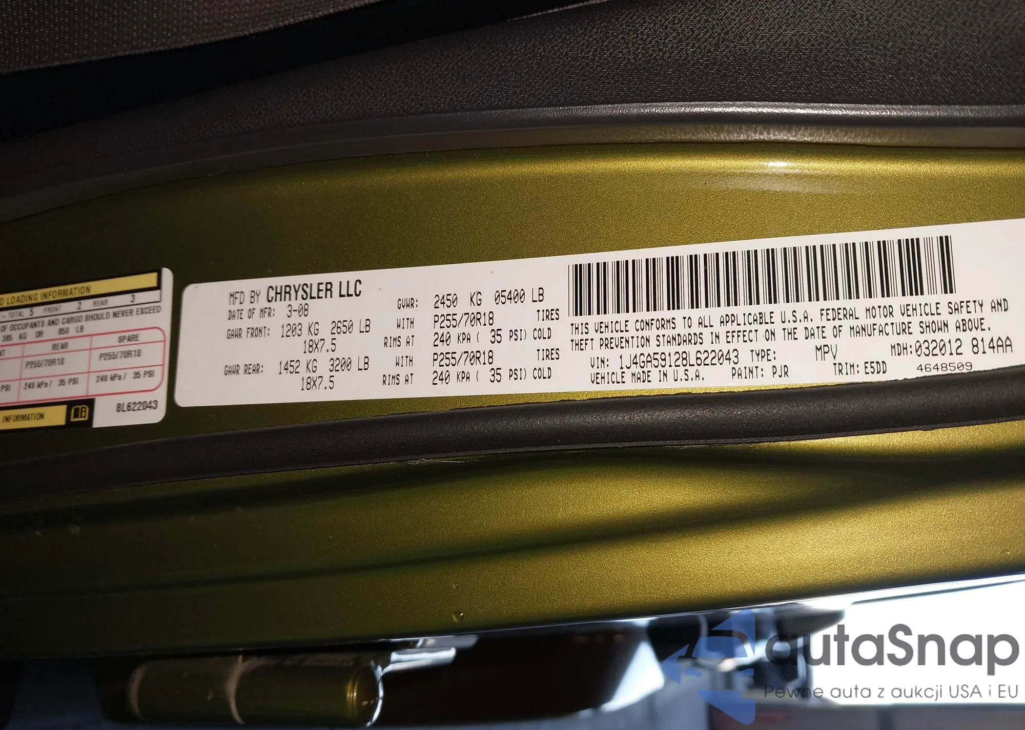 LOT: 43369488 VIN: 1J4GA59128L622043