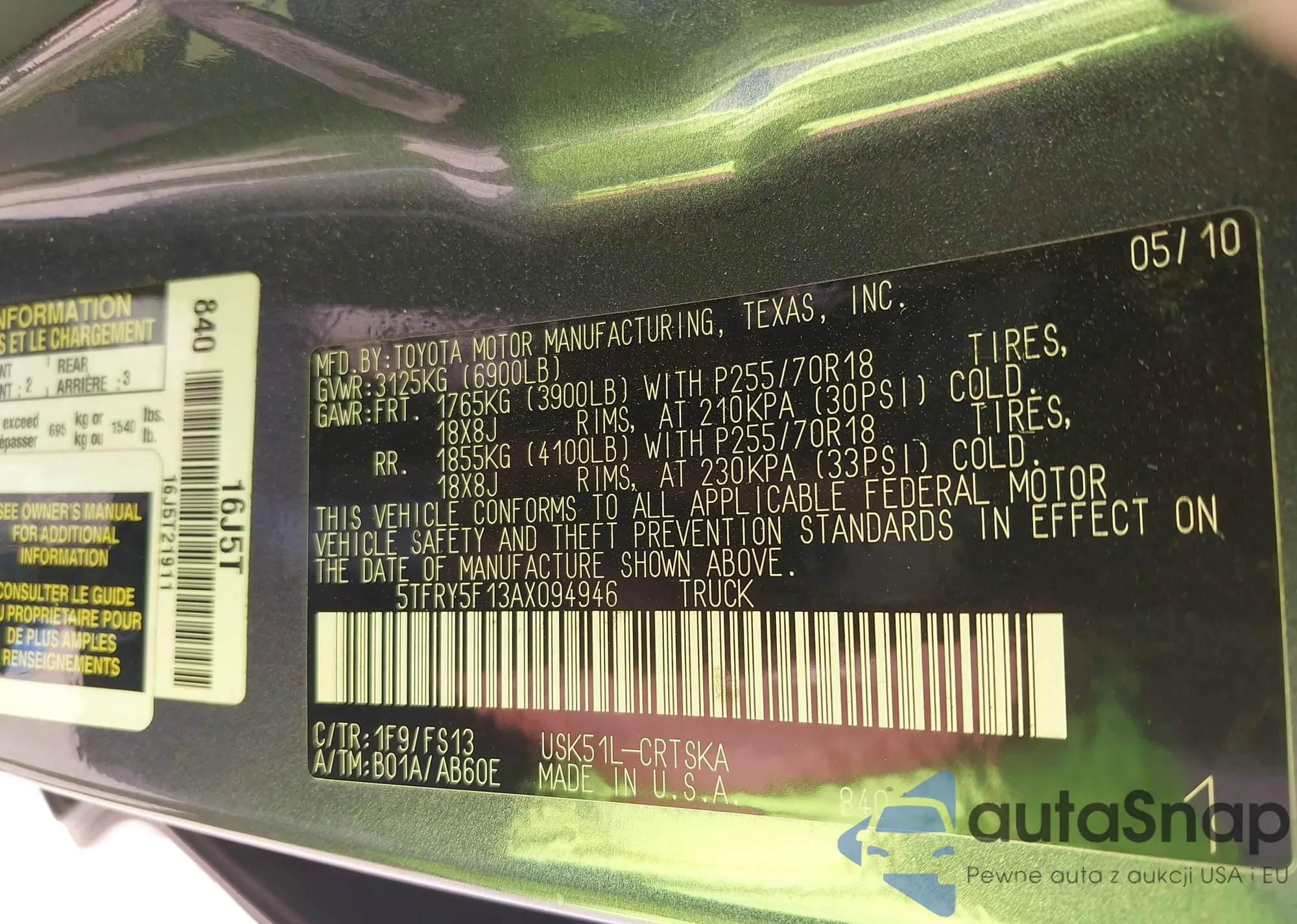 • VIN 5TFRY5F13AX094946