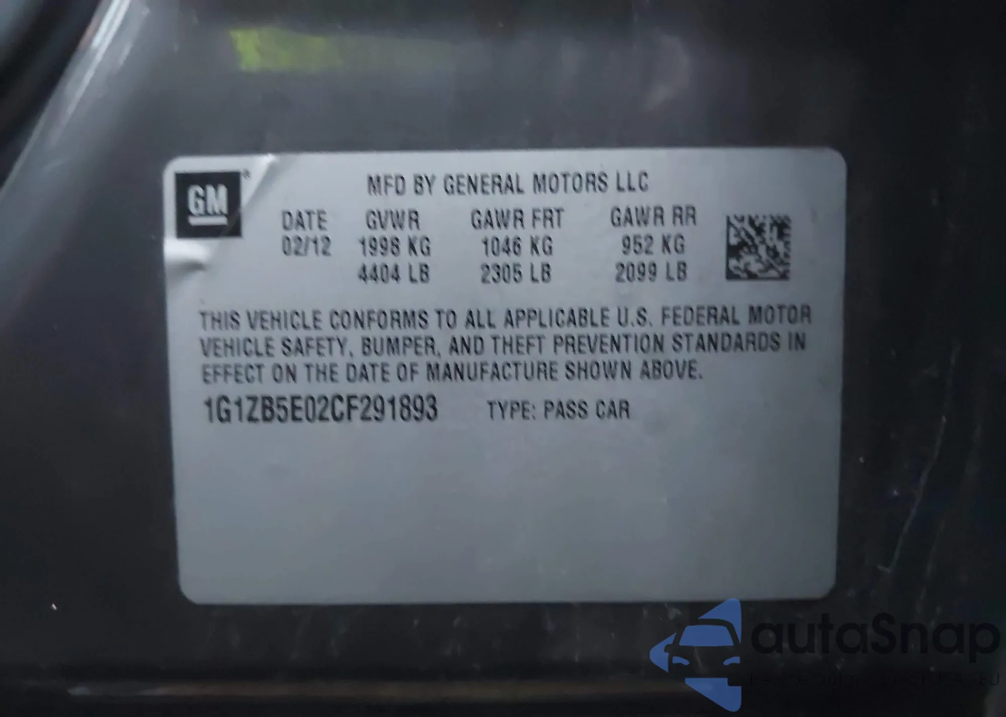 LOT: 43780373 VIN: 1G1ZB5E02CF291893