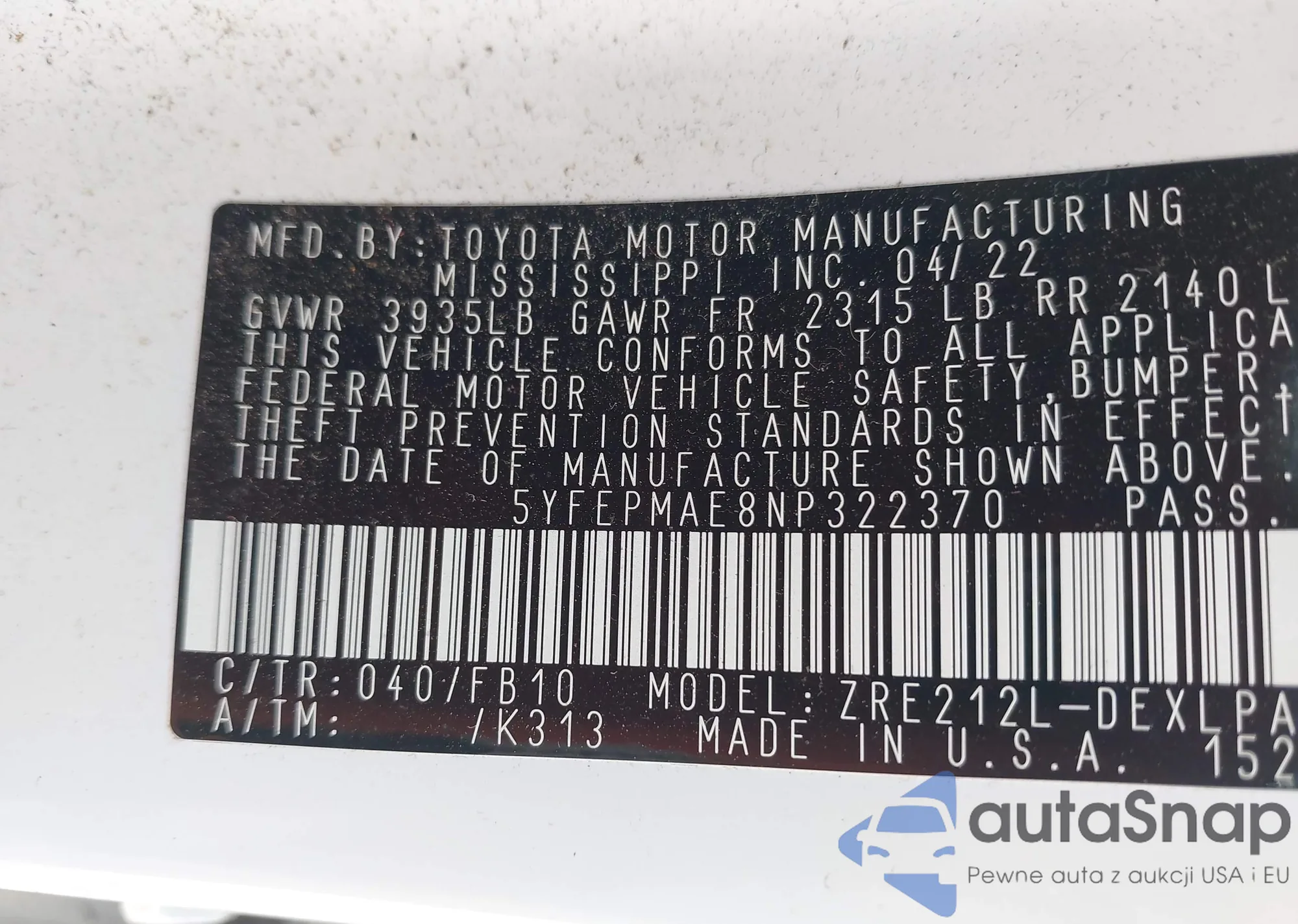 • VIN 5XYK4CAF6PG122979