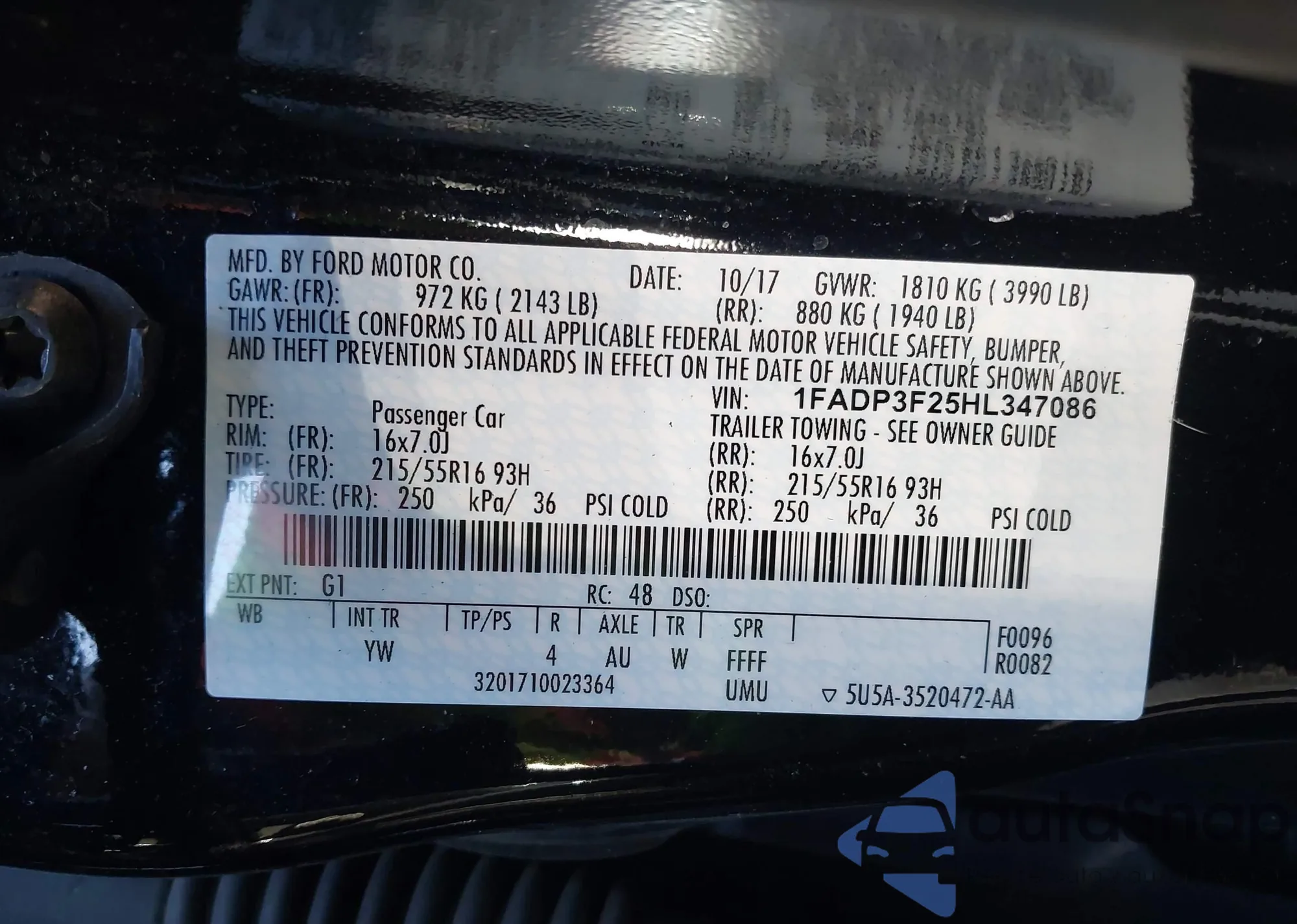 LOT: 43710330 VIN: 5NPE24AFXHH563839