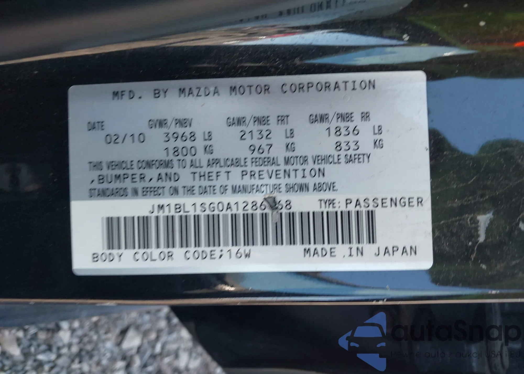 LOT: 43750982 VIN: JM1BL1SG0A1286668