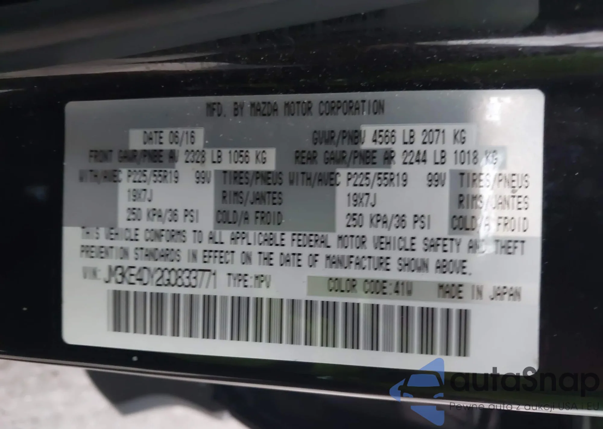 LOT: 43758167 VIN: JM3KE4DY2G0833771