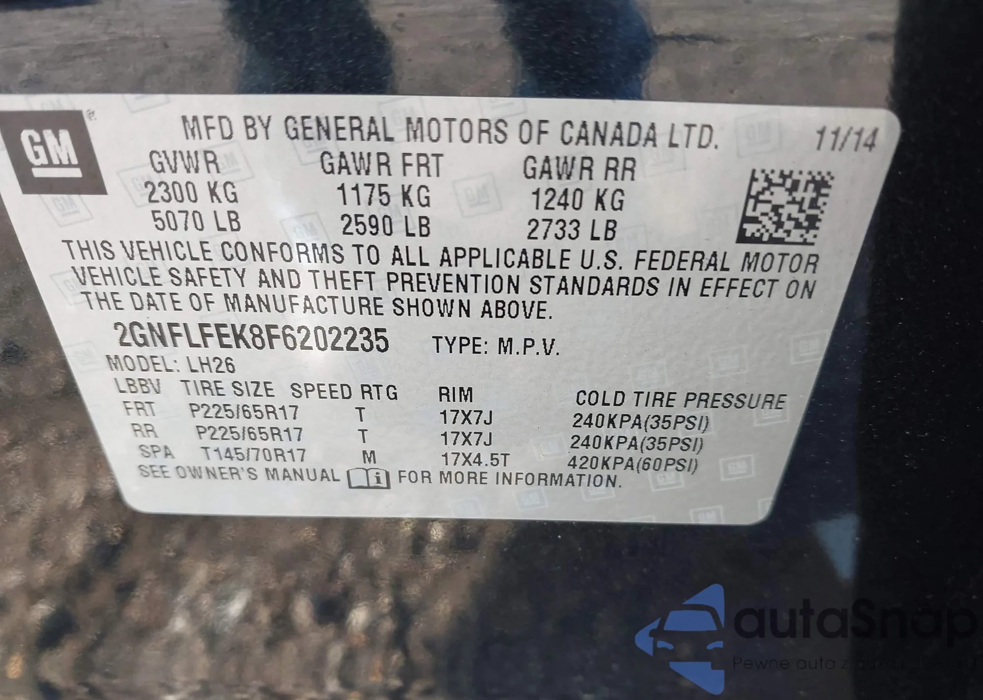 • VIN KL4CJCSB5EB573816