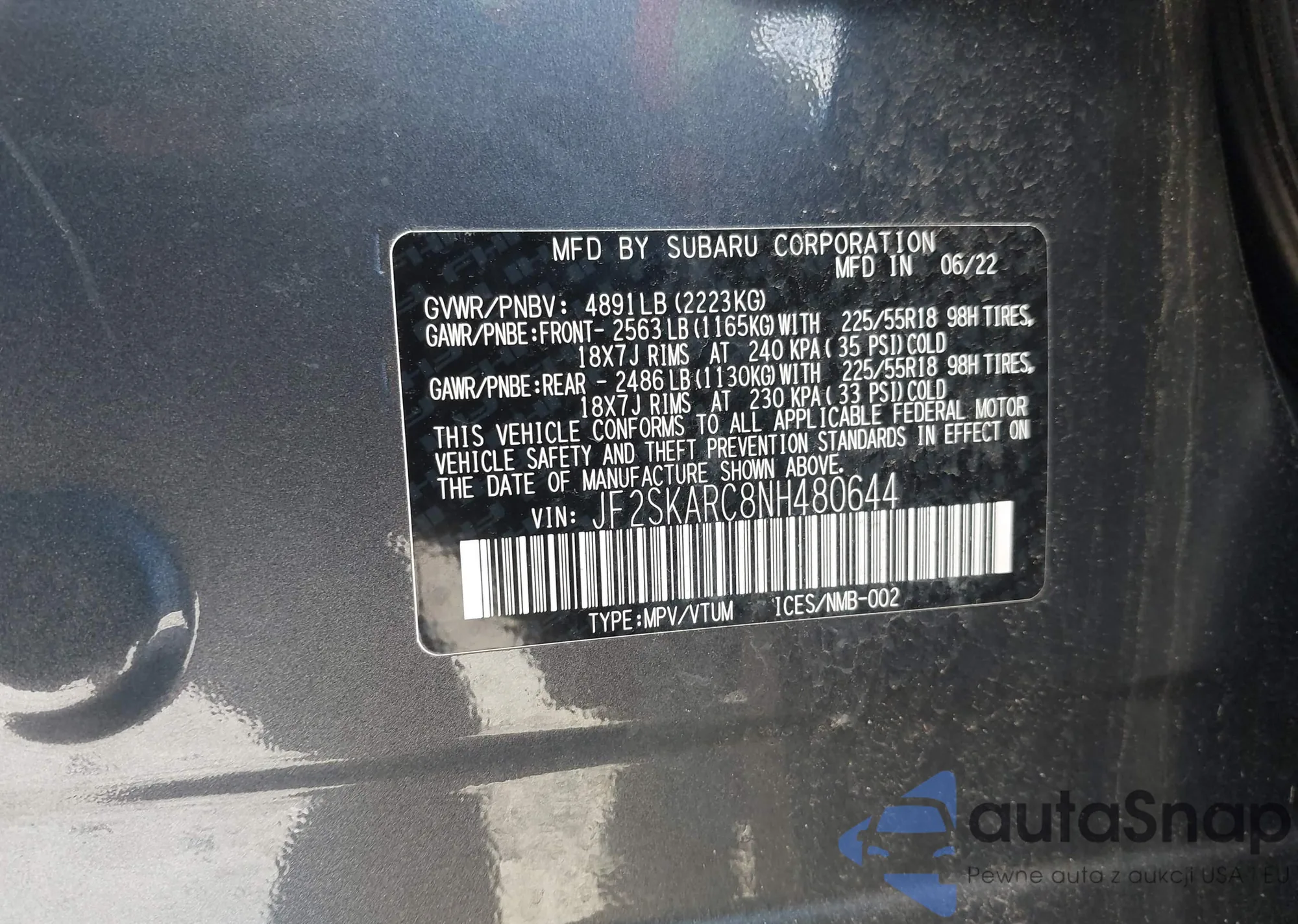 • VIN JF2SKARC8NH480644
