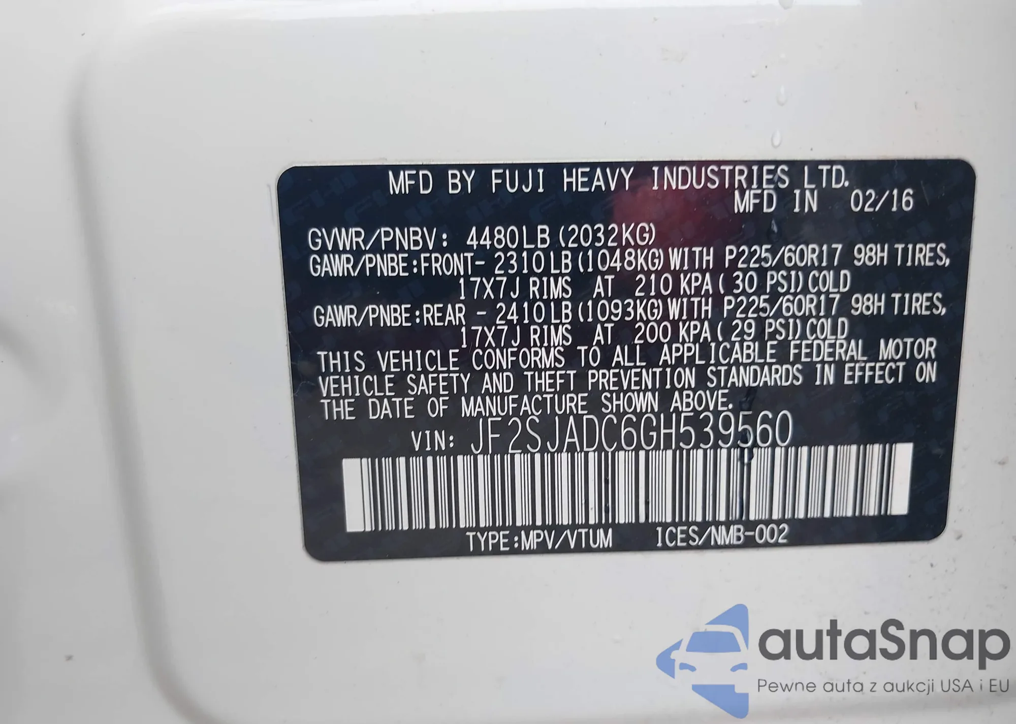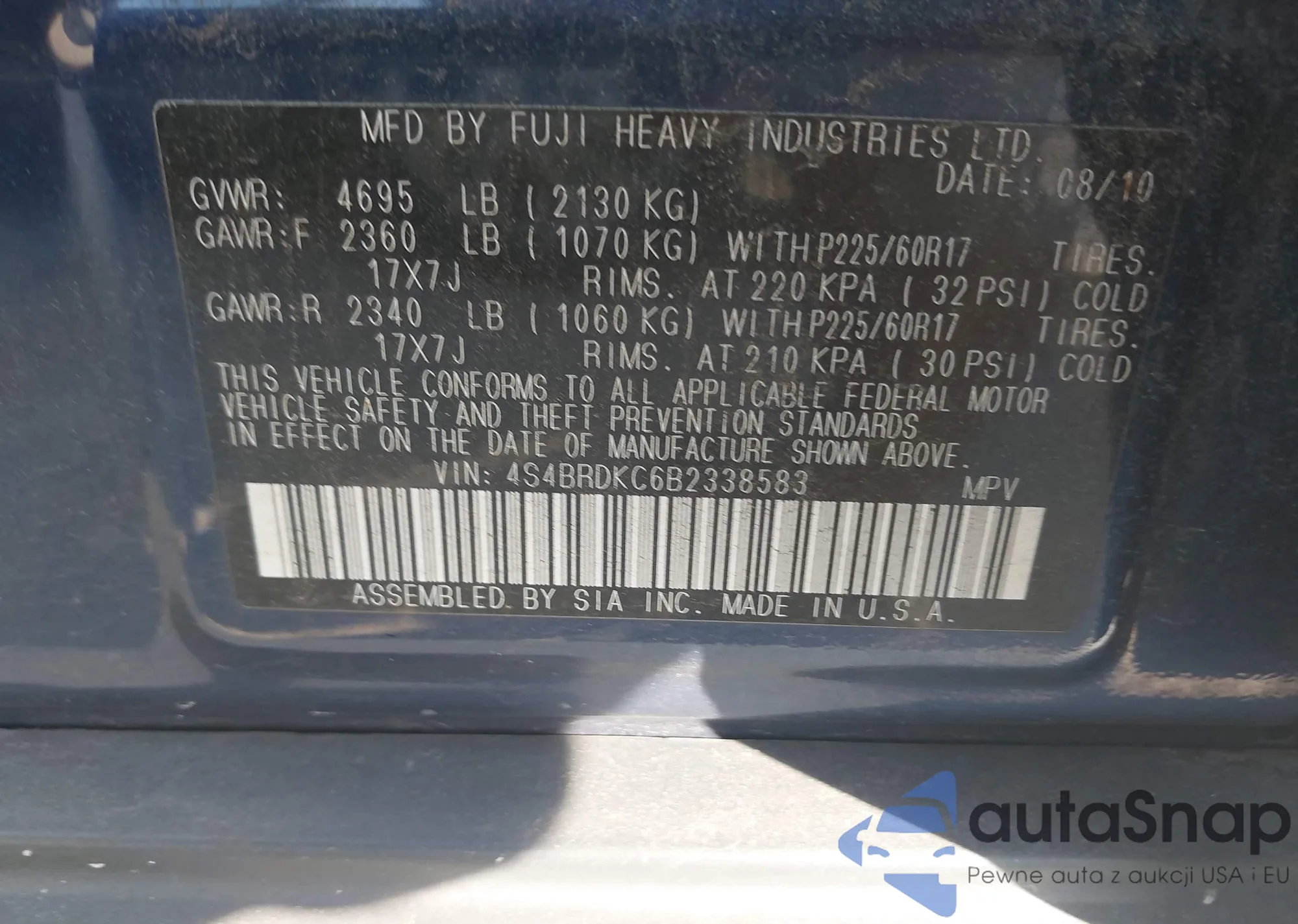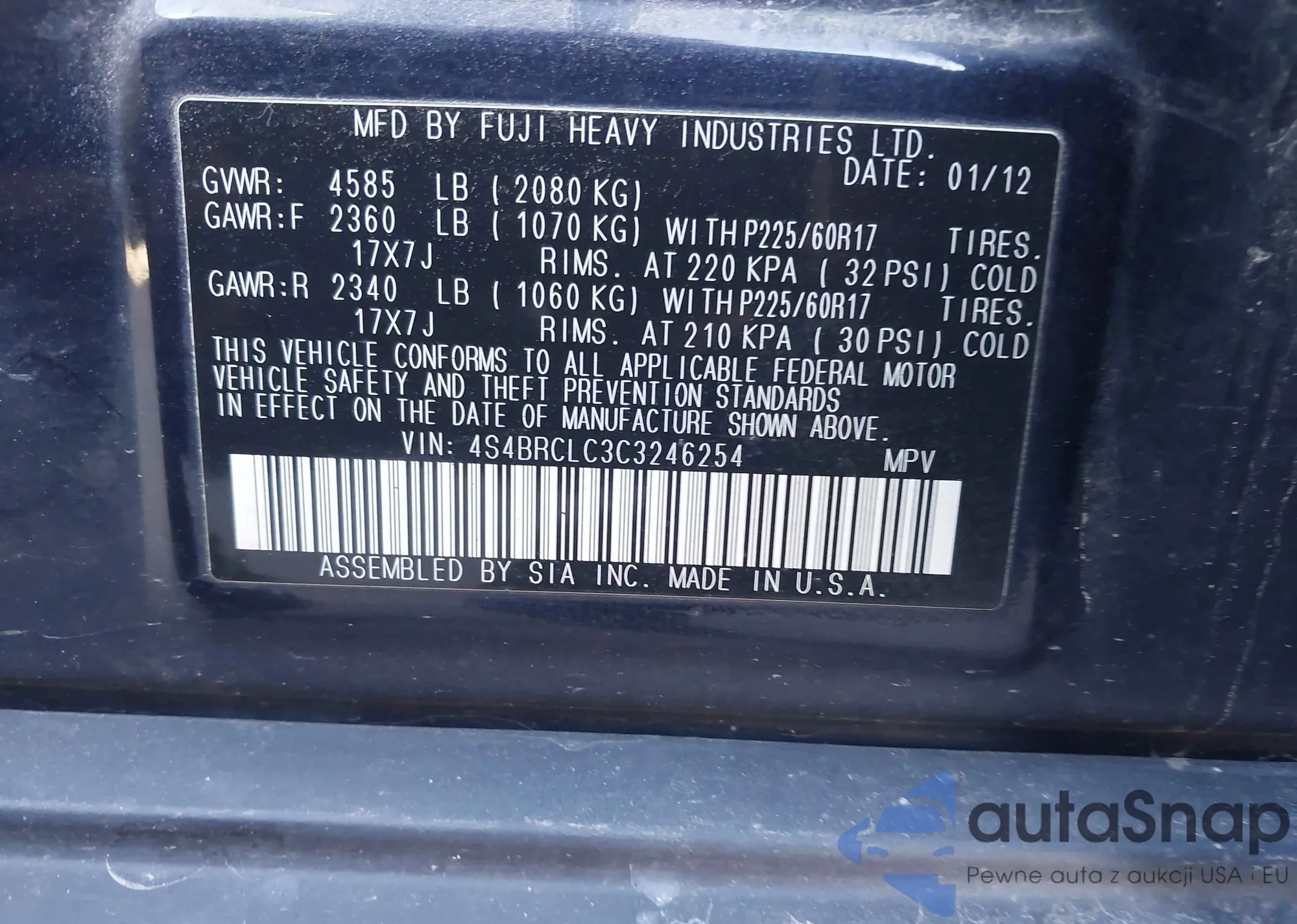 • VIN 4S4BRCLC3C3246254