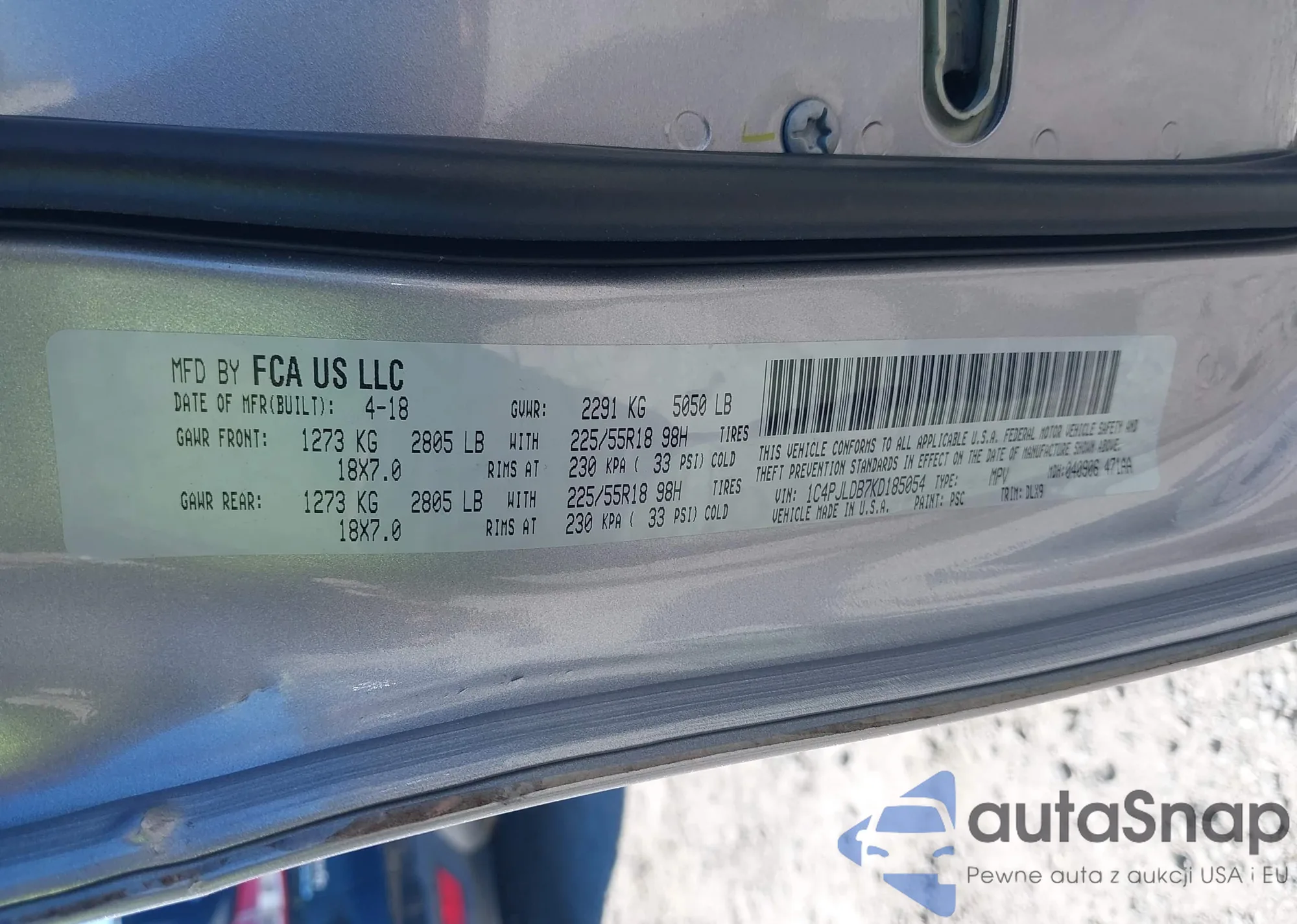 • VIN 1C4PJLDB7KD185054