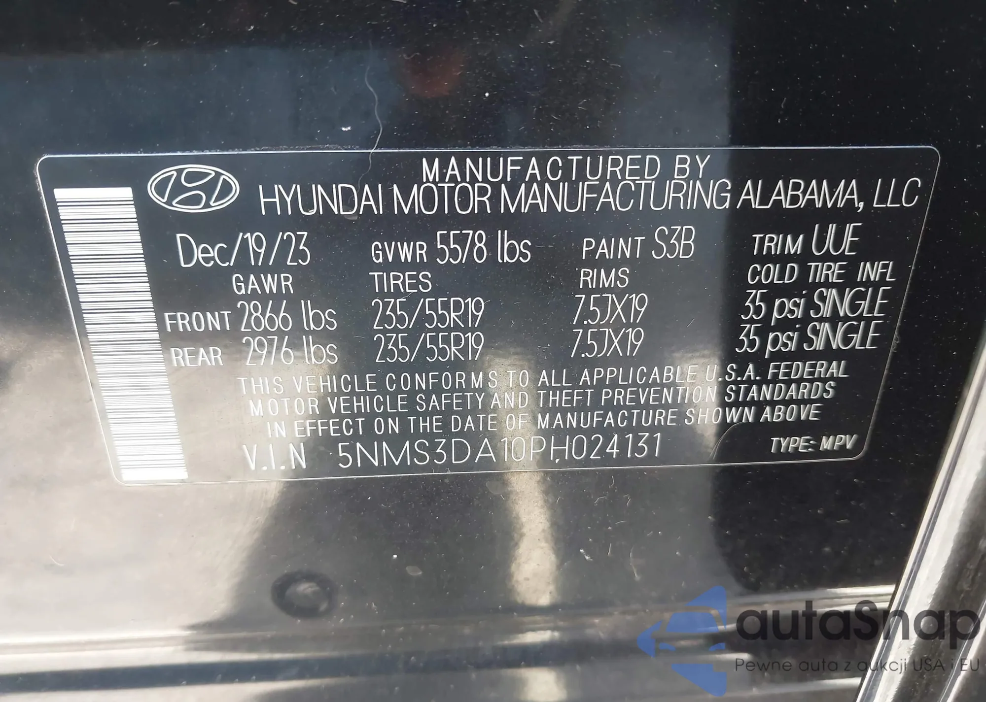 • VIN 5NMS3DA10PH024131