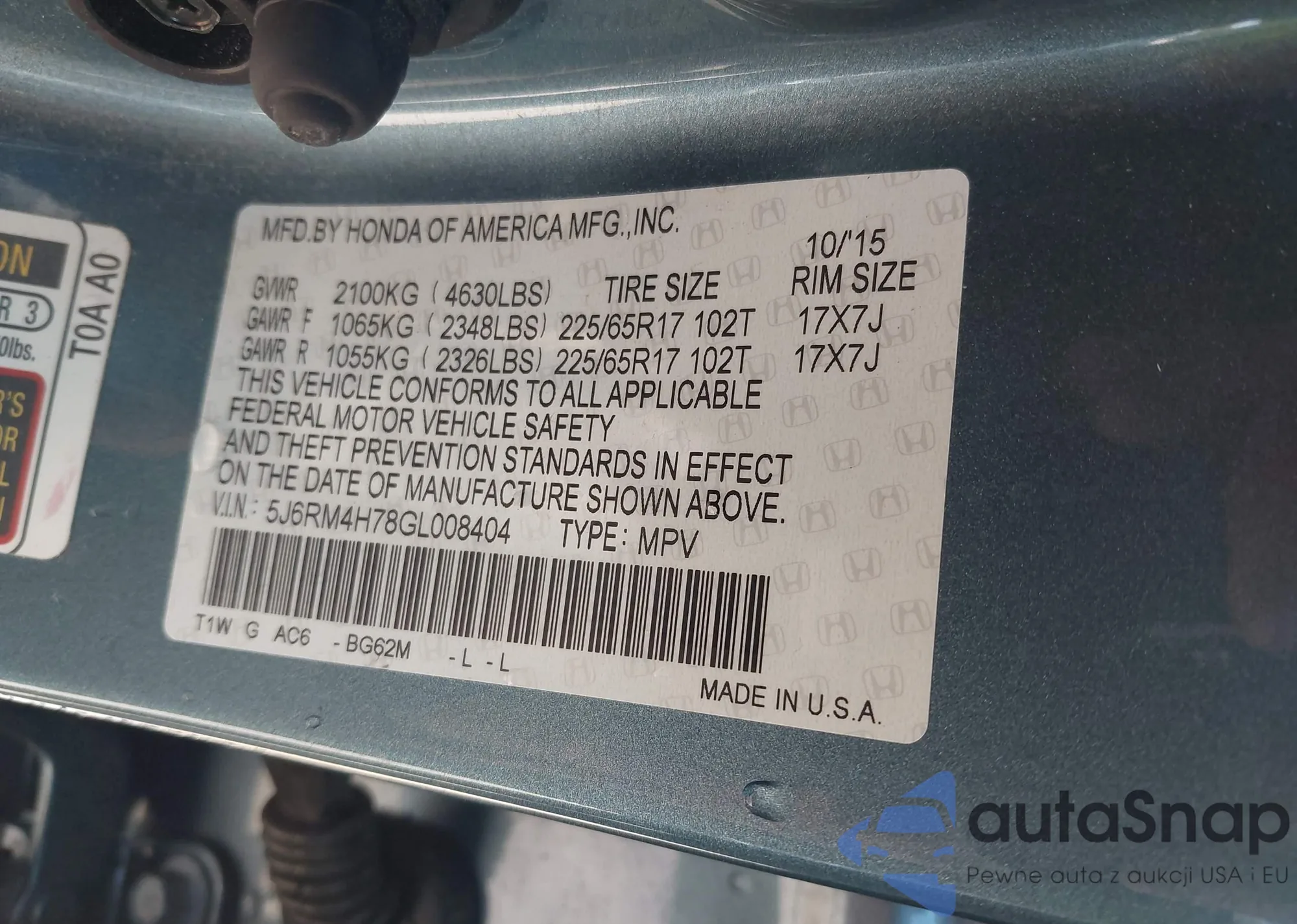 LOT: 43648594 VIN: 5FNRL5H4XFB013495