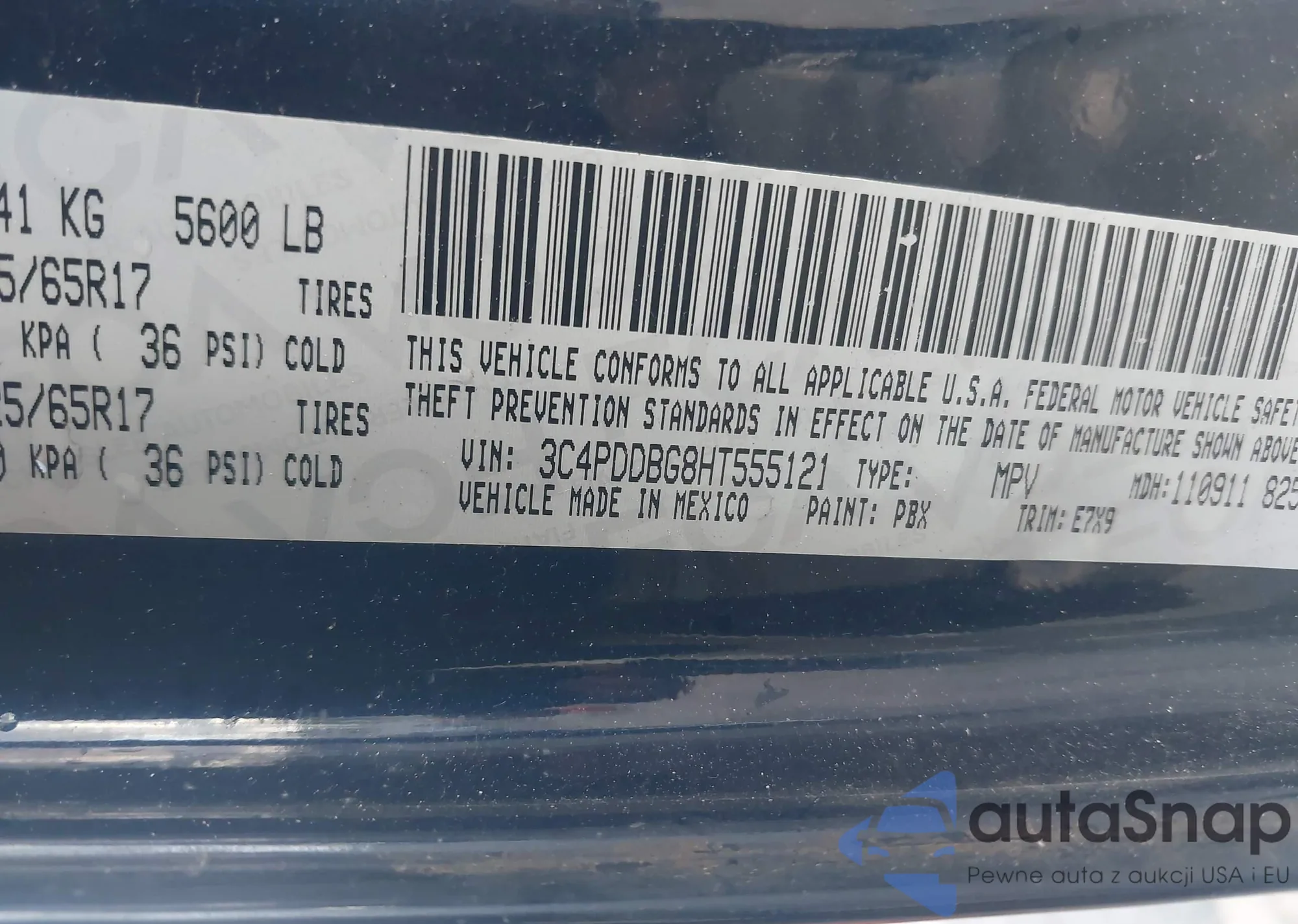• VIN 3C4PDDBG8HT555121
