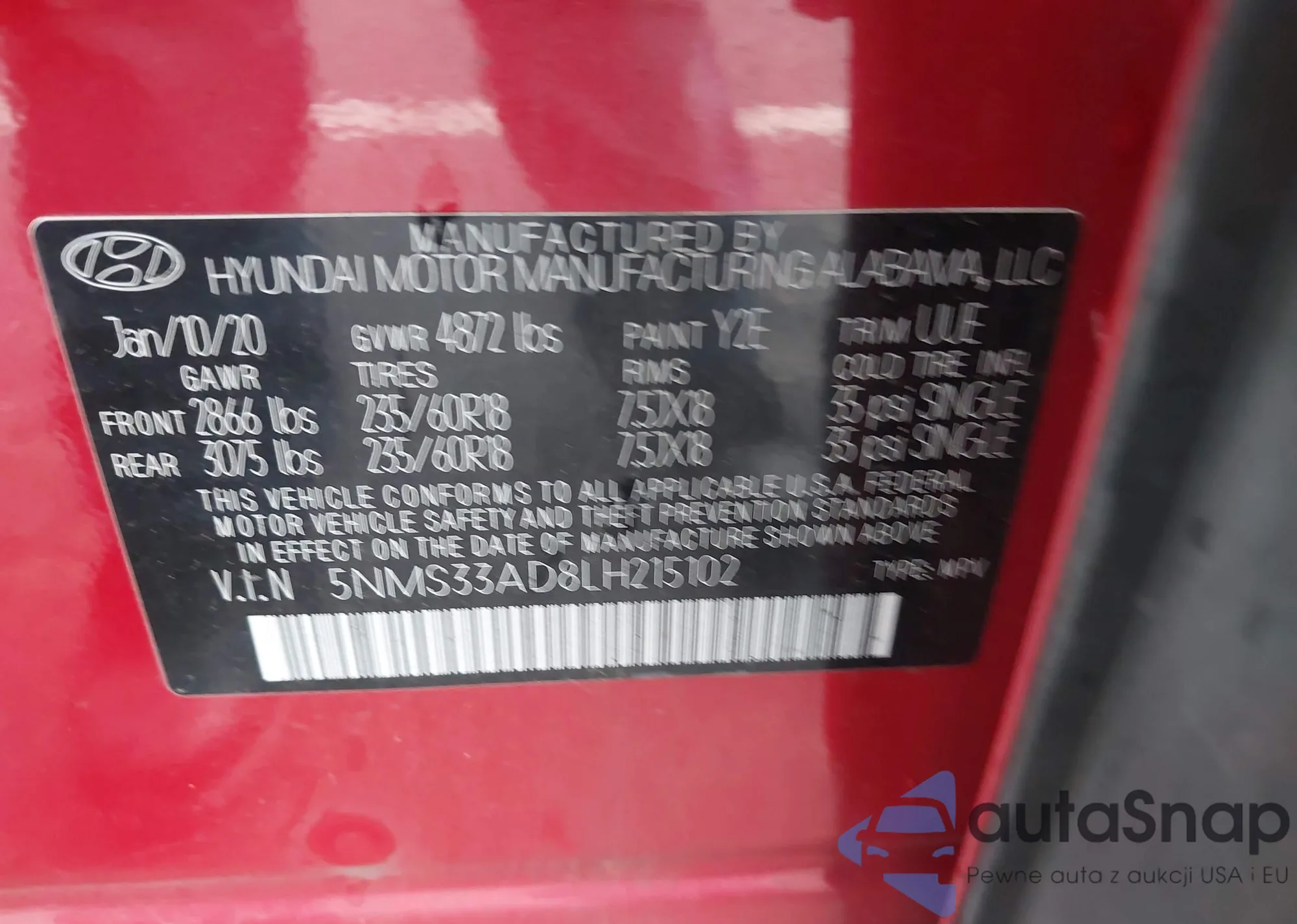 • VIN 5NMS33AD8LH215102