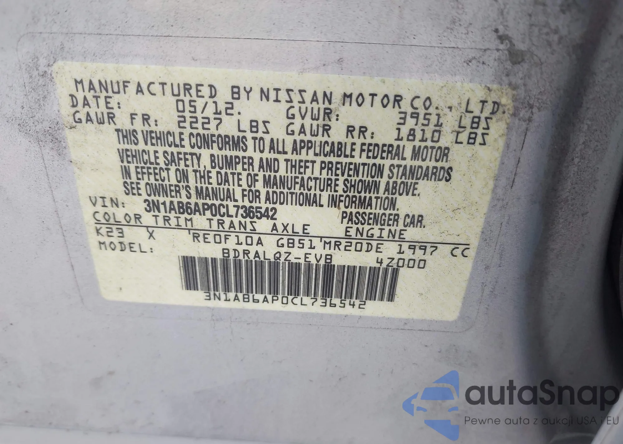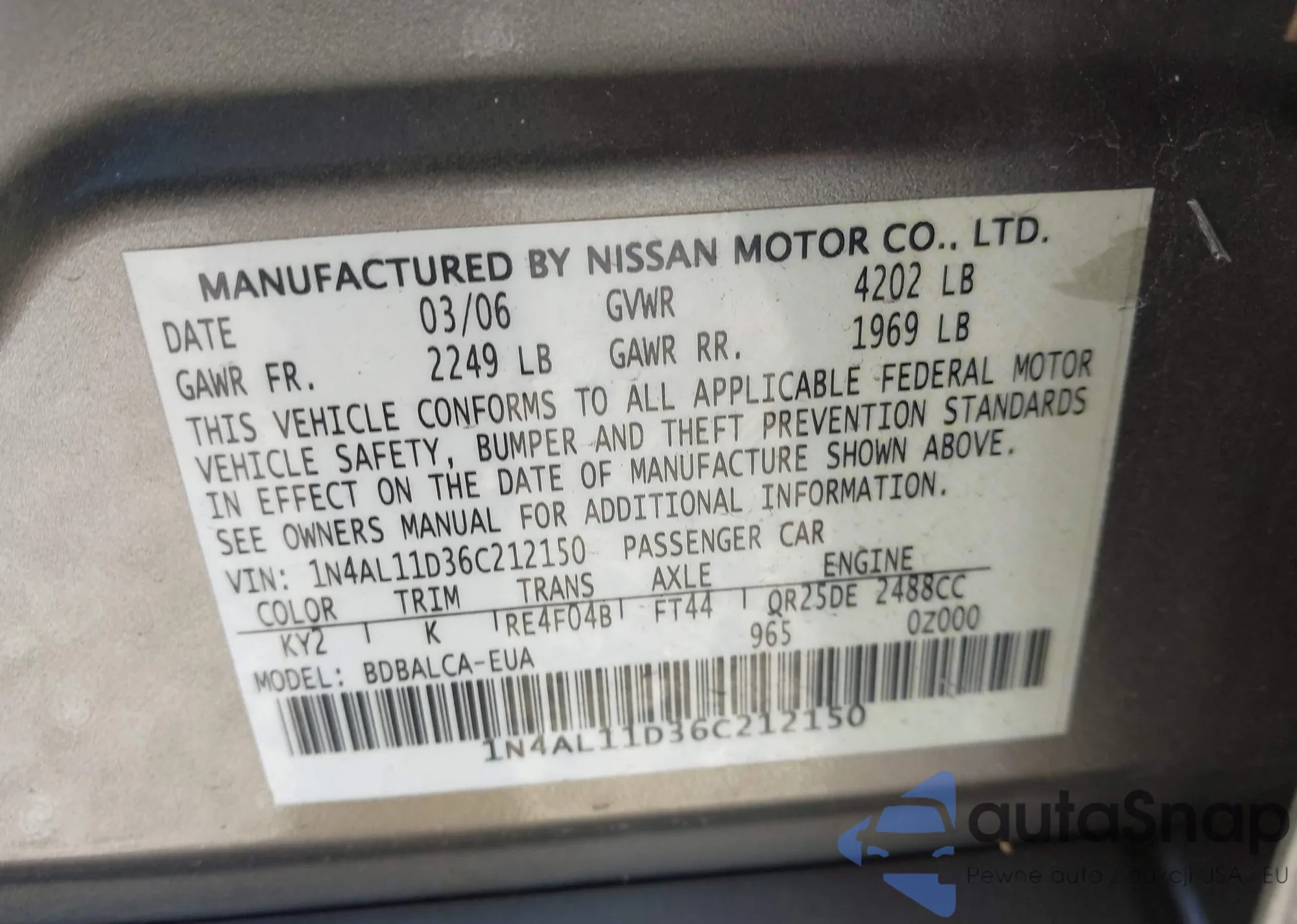• VIN 1N4AL11D36C212150