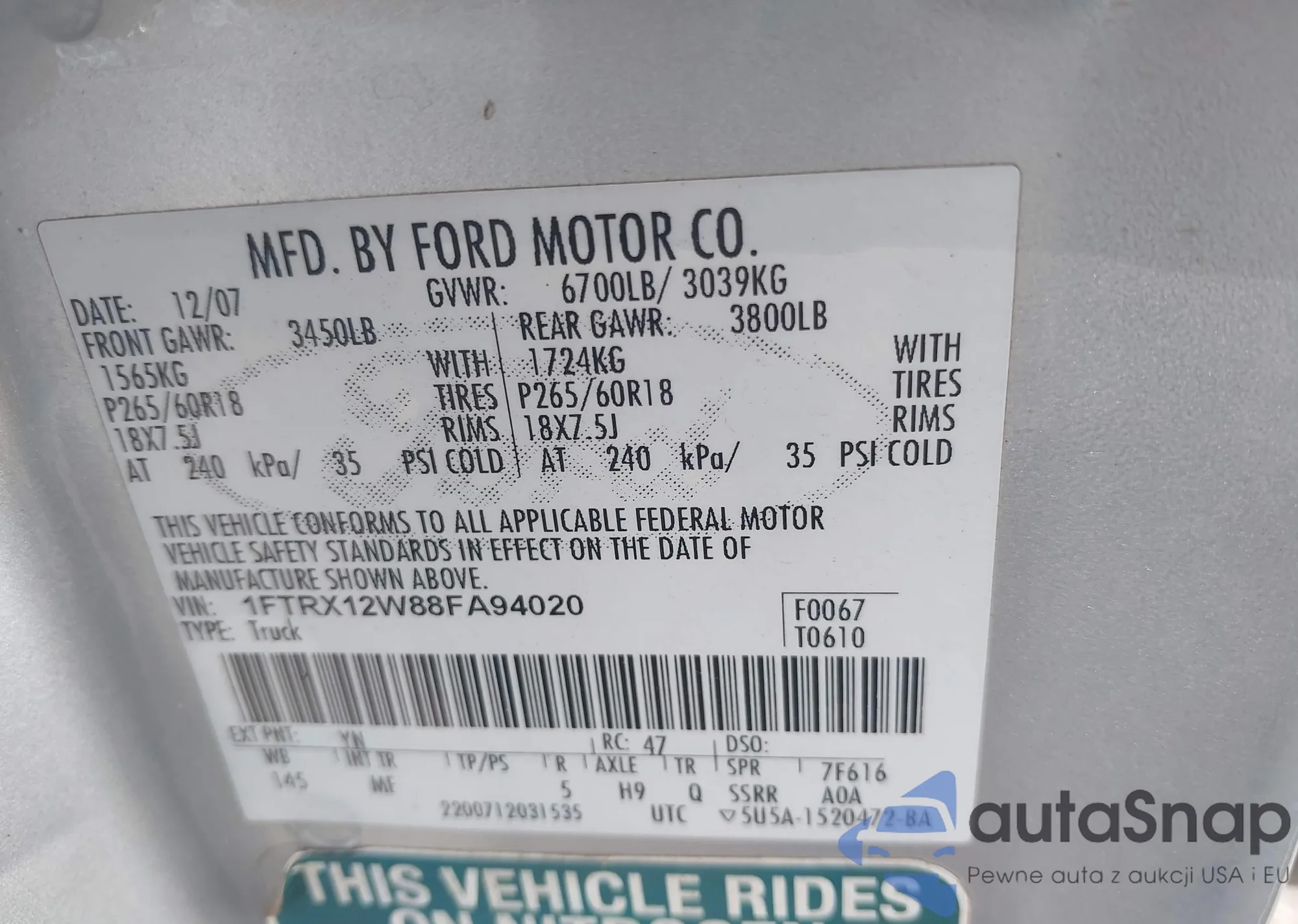 • VIN 3FAHP02149R159420