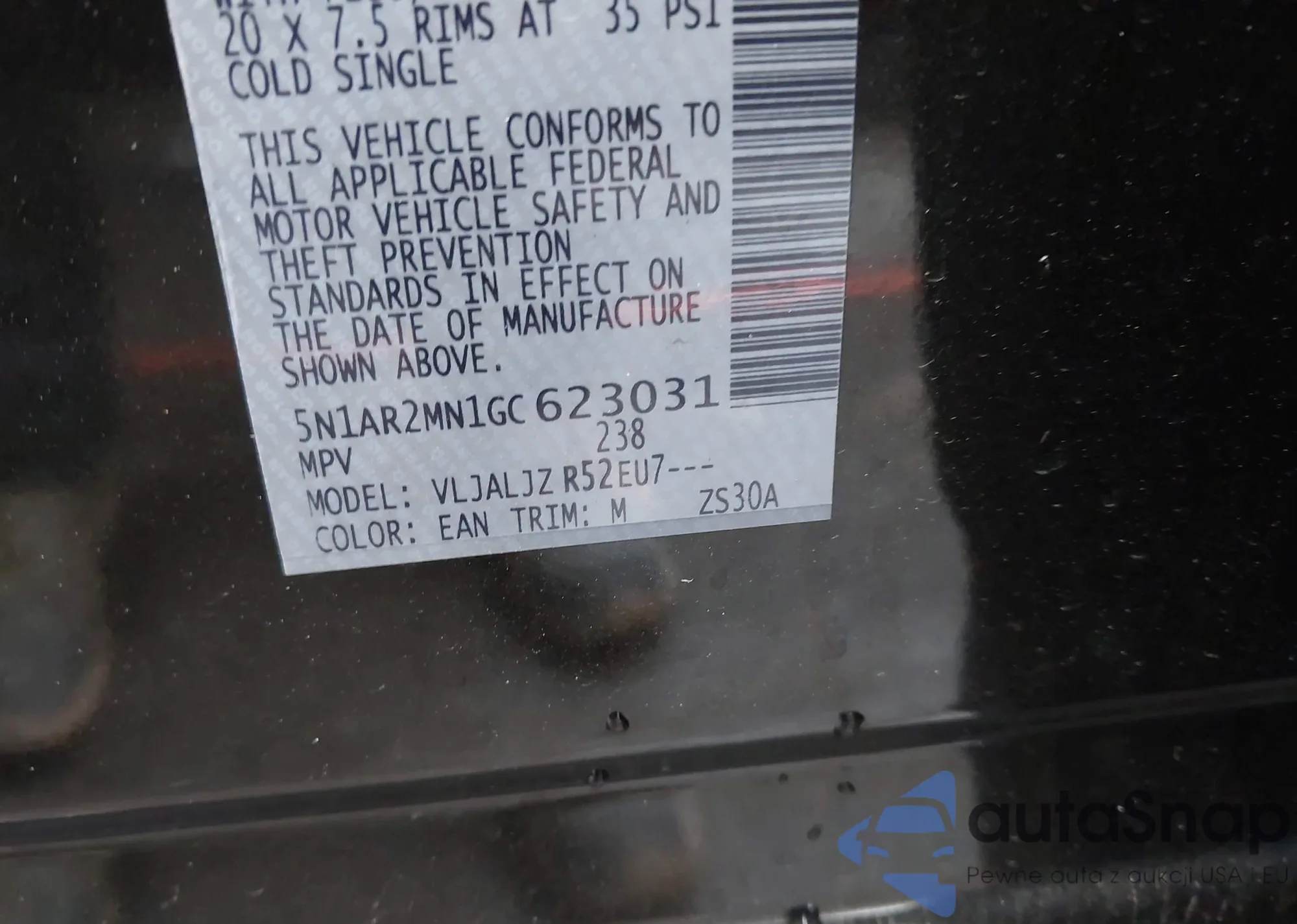 • VIN 5N1AR2MN1GC623031