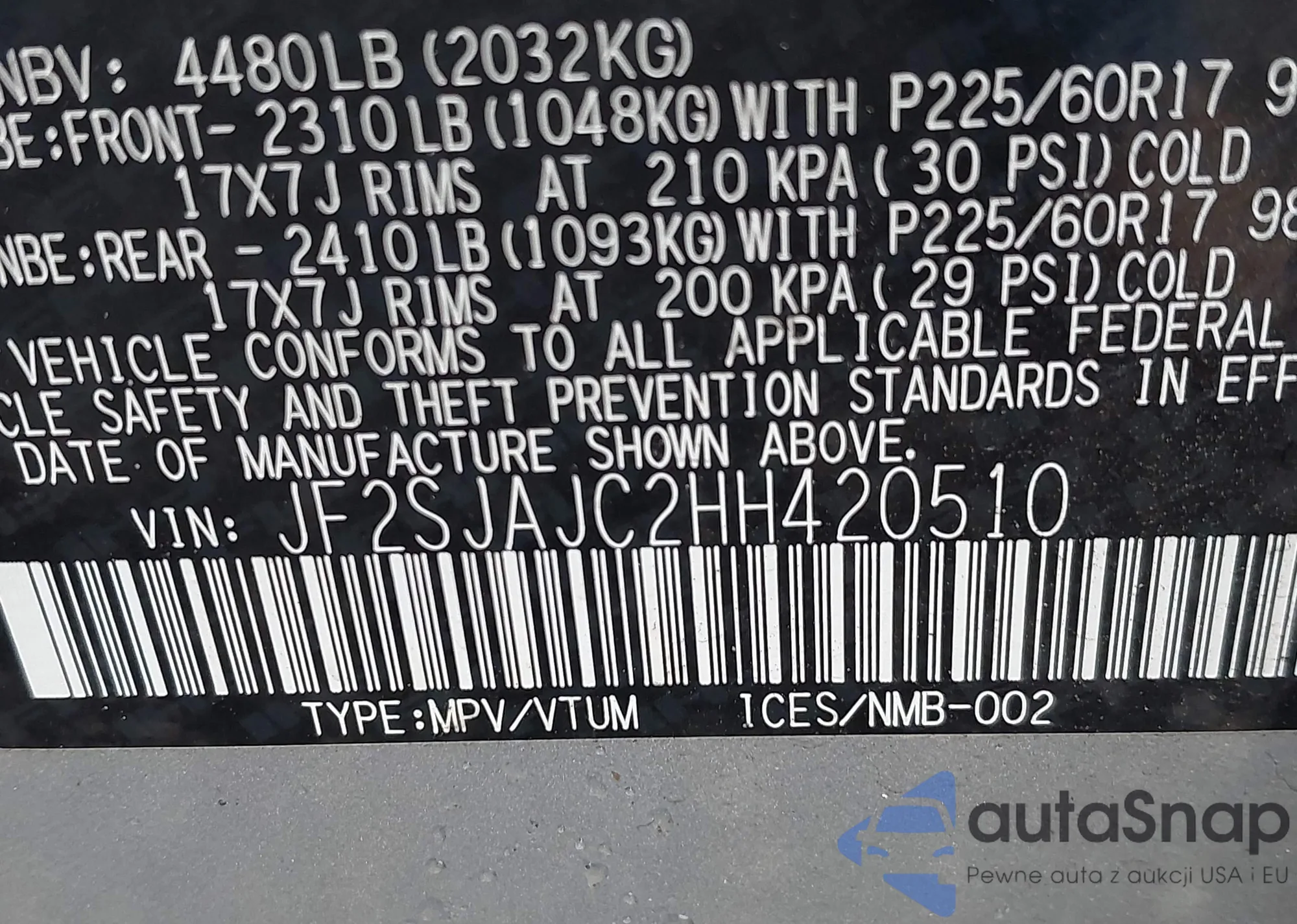 • VIN 5YFB4MDE9SP317021